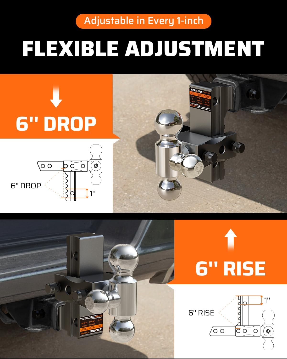 Ehaho Adjustable Trailer Hitch with Wireless Trailer Lights Magnetic Kit