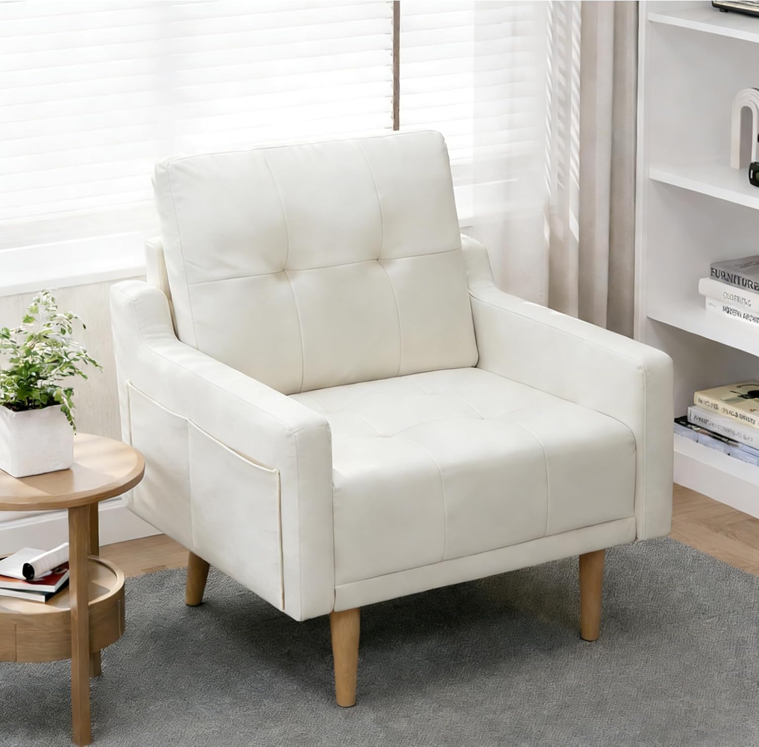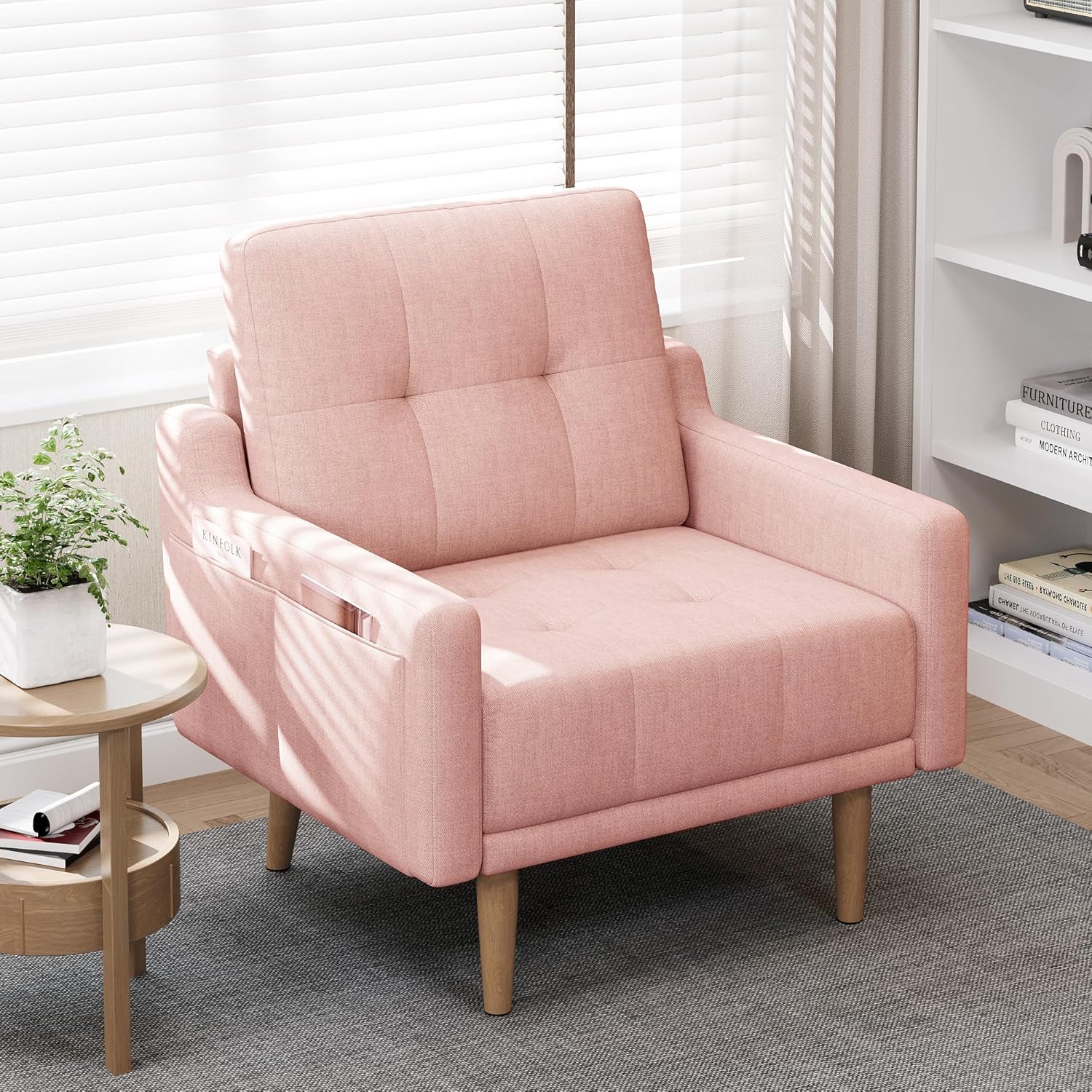 • 【Side Pockets design】The arm chair has side pockets, making it suitable for keeping small items such as remote control and magazine within easy reach.The bedroom chair can help make reasonable use of space. Enjoy a neat and organized lounge area with quick-access storage