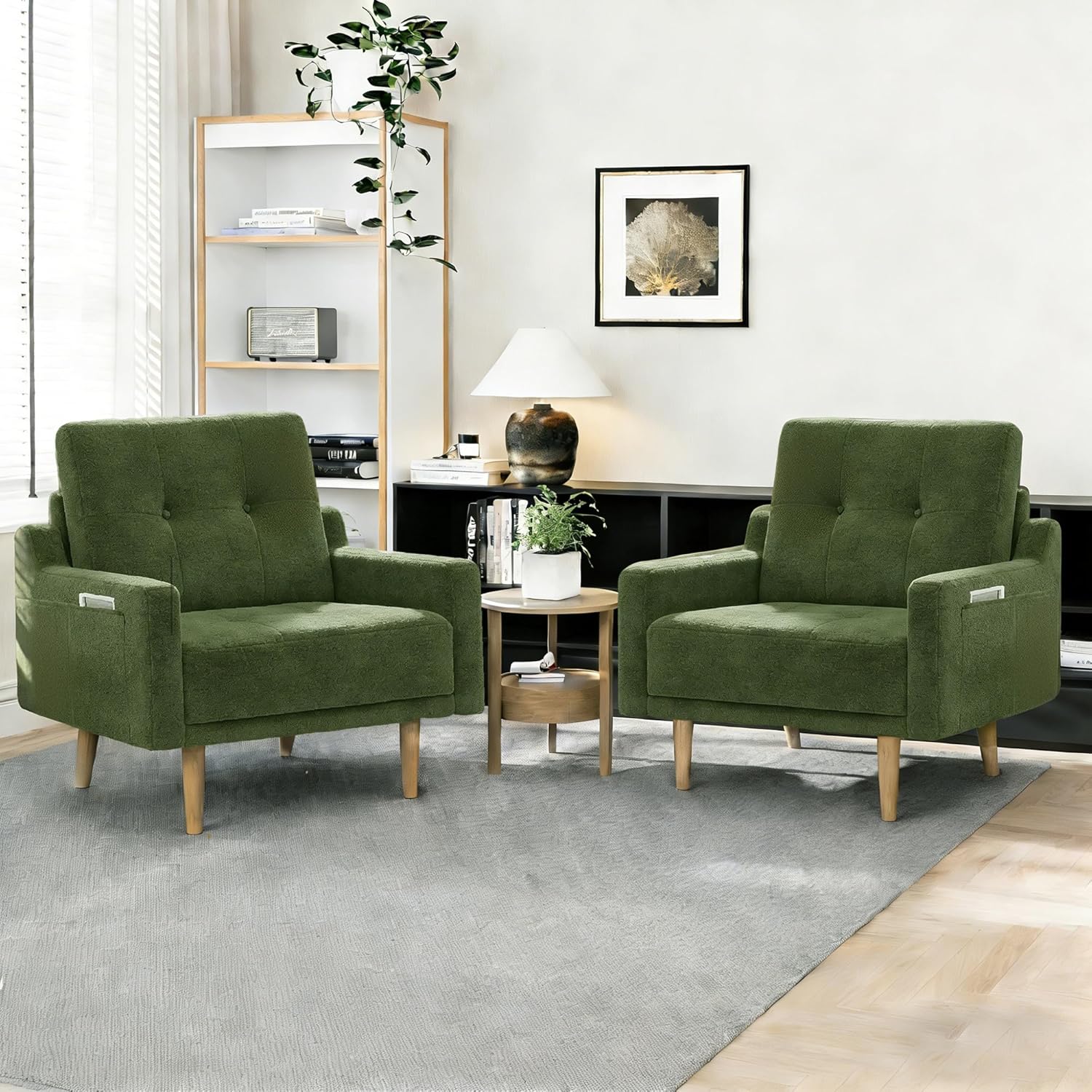 • 【Mid-Century & Simple Style】Our accent chairs for living room choose simple design in appearance.This allows living room chairs to blend seamlessly with various interior styles.Ideal for creating a cozy reading nook or as an extra seating option in your living room