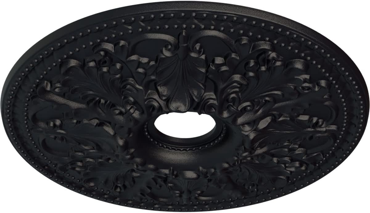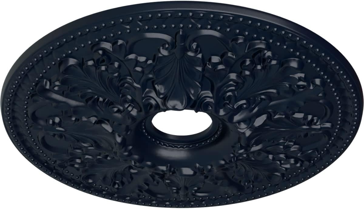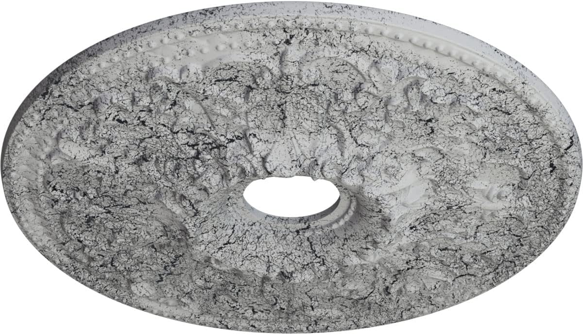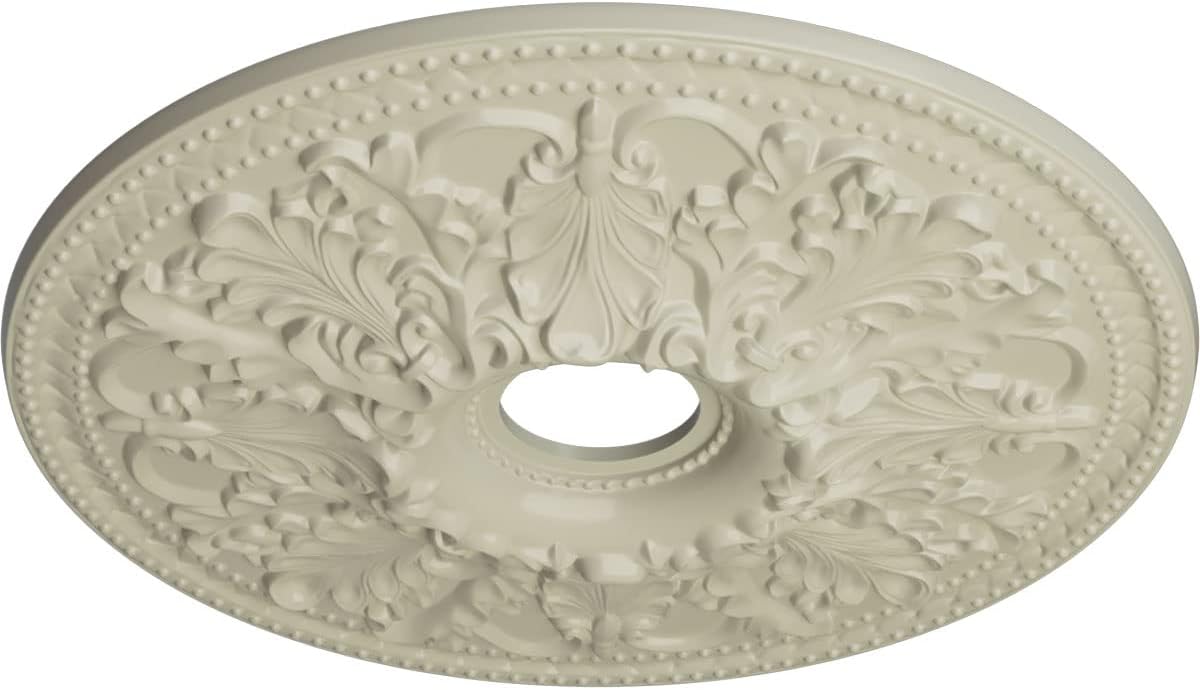 Our ceiling medallion collections are modeled after original historical patterns and designs. Our artisans then hand carve an original piece. Being hand carved each piece is richly detailed with deep relief, sharp lines, and a truly unique touch. That master piece is then used to create a mold master. Once the mold master is created we use our high density urethane foam to form each medallion. The finished look is a beautifully detailed, light weight, solid construction, focal piece. The resemblance to original plaster medallions is achieved only by using our high density urethane and not vacuum formed, "plastic" type medallions. Medallions can be cut using standard woodworking tools to add a hole for electrical or a ceiling fan canopy. Medallions are light weight for easy installation. They are fully primed and ready for your paint. If you have any questions feel free to ask. These are in stock and available for immediate shipment.