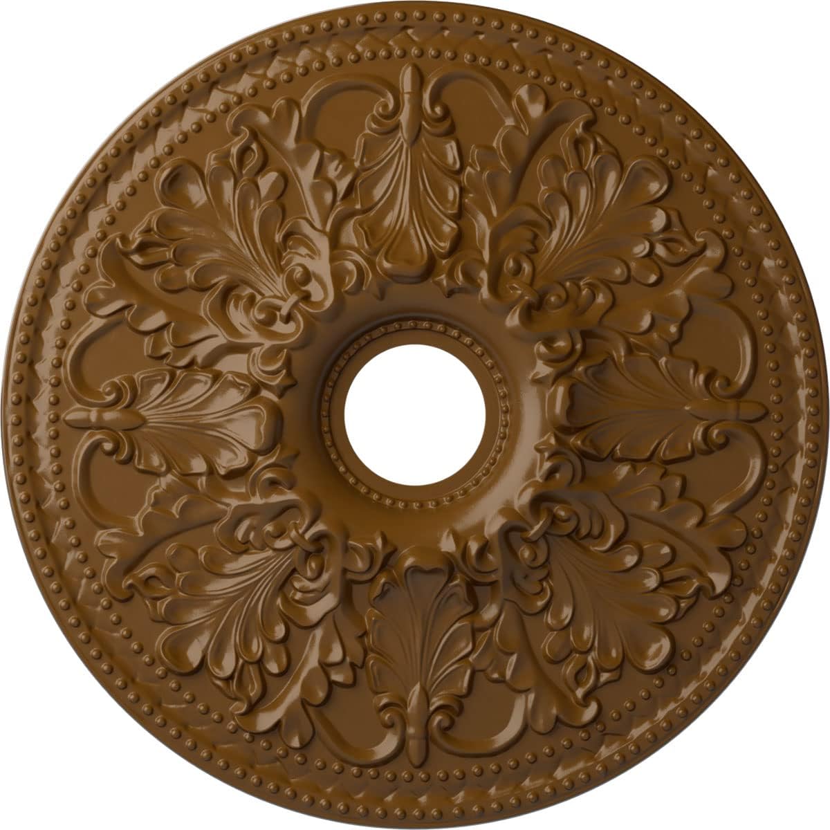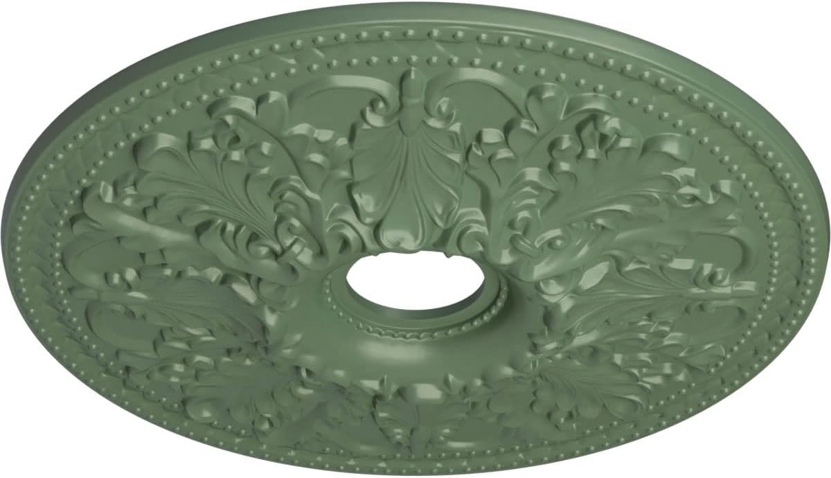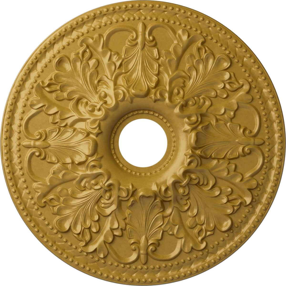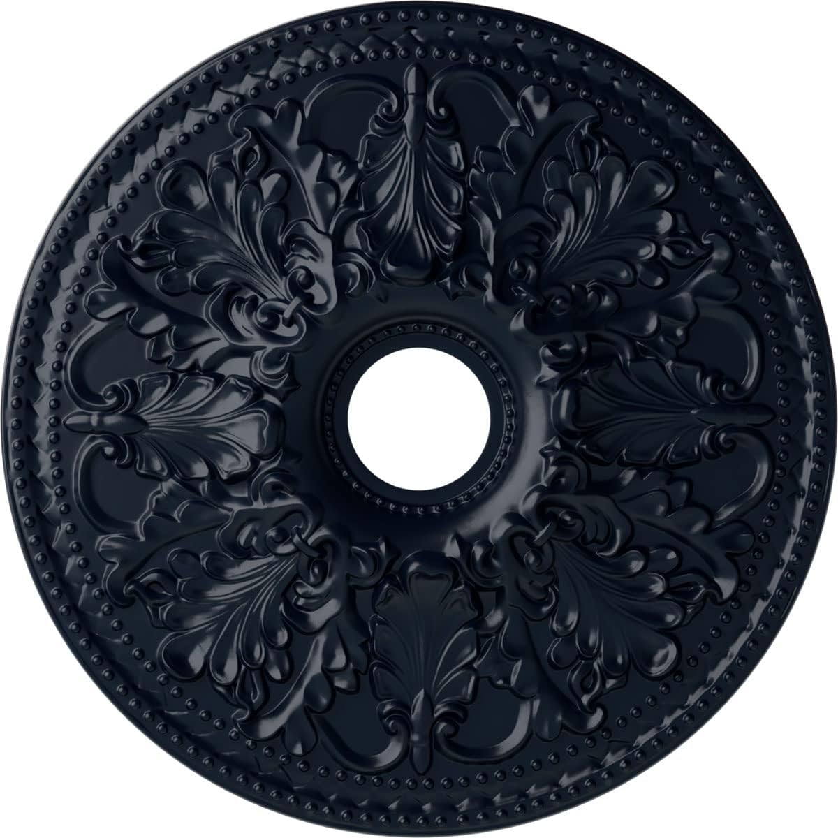 Our ceiling medallion collections are modeled after original historical patterns and designs. Our artisans then hand carve an original piece. Being hand carved each piece is richly detailed with deep relief, sharp lines, and a truly unique touch. That master piece is then used to create a mold master. Once the mold master is created we use our high density urethane foam to form each medallion. The finished look is a beautifully detailed, light weight, solid construction, focal piece. The resemblance to original plaster medallions is achieved only by using our high density urethane and not vacuum formed, "plastic" type medallions. Medallions can be cut using standard woodworking tools to add a hole for electrical or a ceiling fan canopy. Medallions are light weight for easy installation. They are fully primed and ready for your paint. If you have any questions feel free to ask. These are in stock and available for immediate shipment.