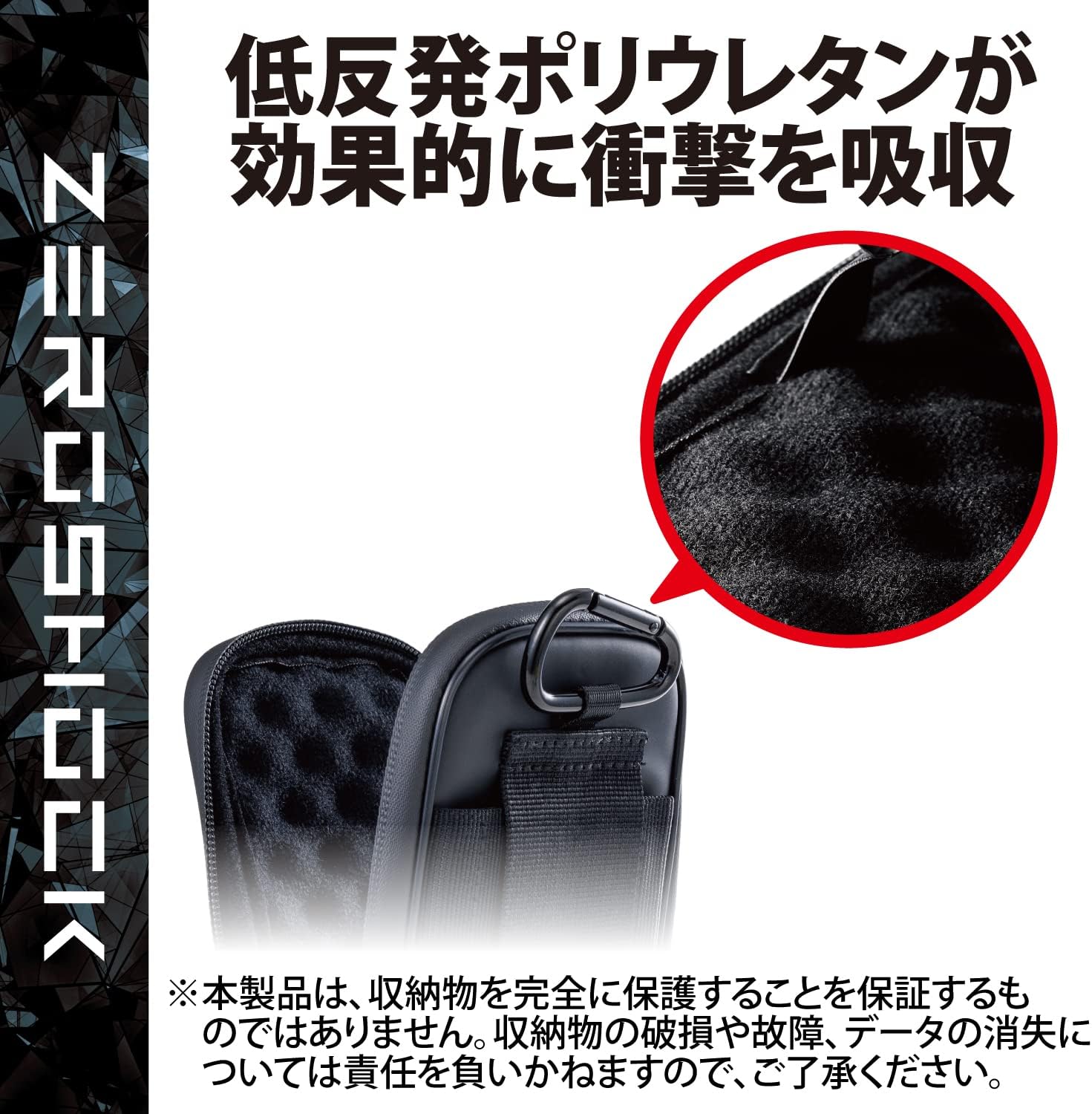 This is a carrying pouch for smartphones from the ZEROSHOCK series with excellent shock absorption. The belt loop, shoulder belt loop, and carabiner hook can be selected as needed. Wave shaped memory foam polyurethane (memory foam wave foam) effectively absorbs shock and protects your smartphone. ● Maintains a thickness that absorbs impact from the outside while reducing volume and reducing weight. ● The inside of the case is made of velvety material that is hard to damage the ● The surface of the case is made of highly water-repellent fabric. The zipper is used to prevent water from getting wet from the fabric. Uses a double zipper for easy opening and closing.