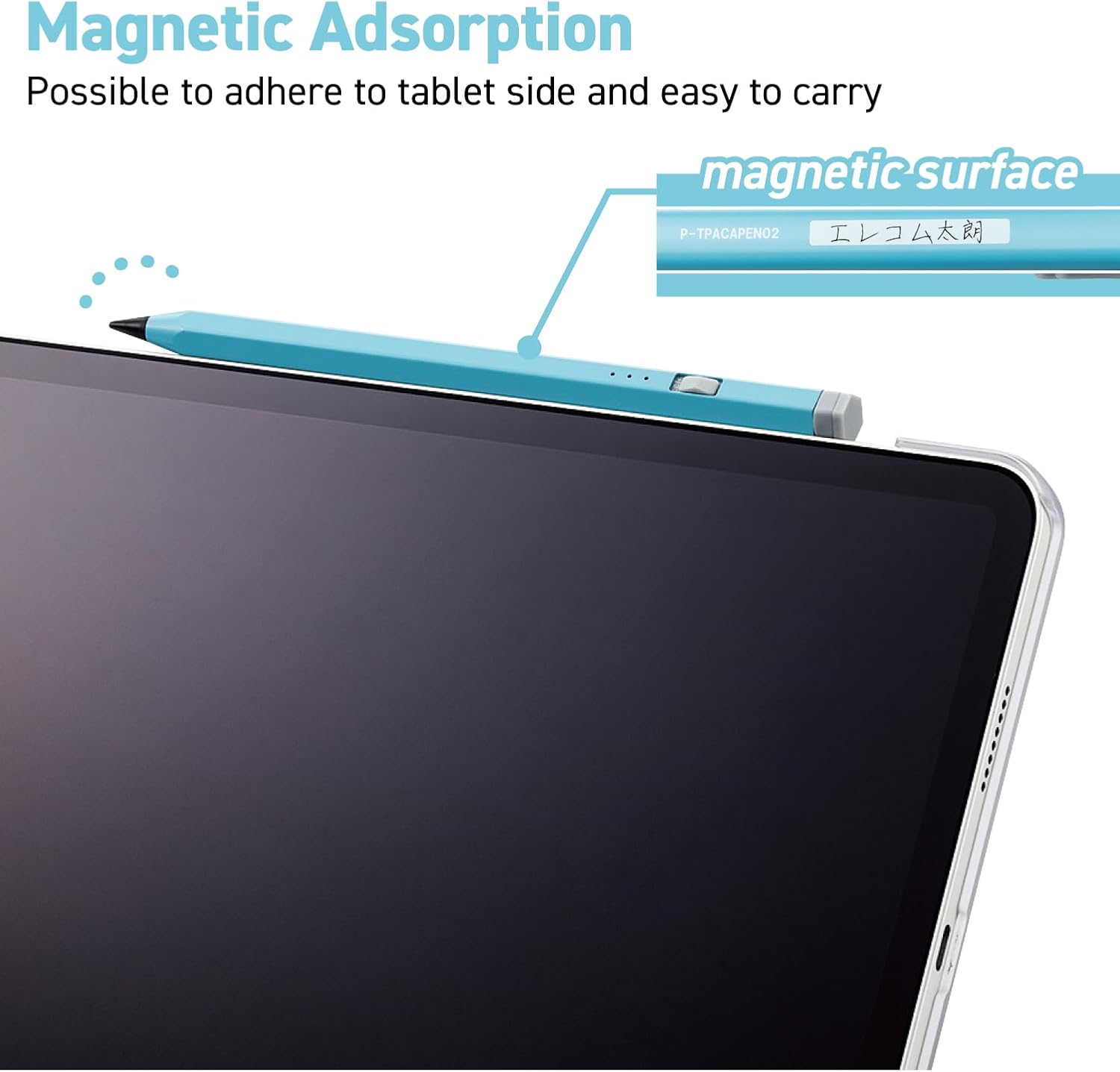 ■ A rechargeable stylus pen compatible with iPad. It is easy to grasp in a pencil like shape.■ A hexagonal body makes it easy to fit your finger and can be gripped like a familiar pencil.■ You can easily turn on/off with a slide switch.■ There is a space where the name is written on the stylus pen.■ On the magnet surface on the side of the touch pen, it is possible to adhere to the surface where the iPad or magnet can be attached.■ Depending on the case attached to the iPad, the magnet part of the iPad itself may be hidden and you may not be able to attach this product.■ The pen tip is about 2mm, it will be helpful to your delicate drawing.■ Pairing is unnecessary. You can use it immediately by simply turned on the power.■ This is a function to detect the inclination of the pen, and the thickness of the line can be changed depending on the tendency.■ Compatible with palm rejection, it can be used without malfunction even if the hand is touching the screen.■ The auto sleep function will work if the state that does not operate lasts for 5 minutes.■ You can see the remaining battery level with the LED lamp.■ To use continuously for about 10 hours.■ The charging port is USB Type-C (TM).■ The USB port for charging has a cap to prevent dust from entering.■ Comes with USB Type-C (TM) cable.■ AC portable charger is not included in the package, please prepare USB output adapter with 5V/500mA or more.■ Compatible models: Compatible with all iPads after 2018. It must be updated after iOS 12.2 or later.■ External dimensions: Total length: about 160mm, diameter: about 10mm, pen tip: about 2.0mm■ Battery: lithium -ion battery■ Use time: about 10 hours. Depending on the usage, charging may be required faster than this guide time.■ Charging time: about 1 hour. Changes depending on the usage and environment.■ Accessories: USB Type-C (TM) (USB-C (TM)) Cable