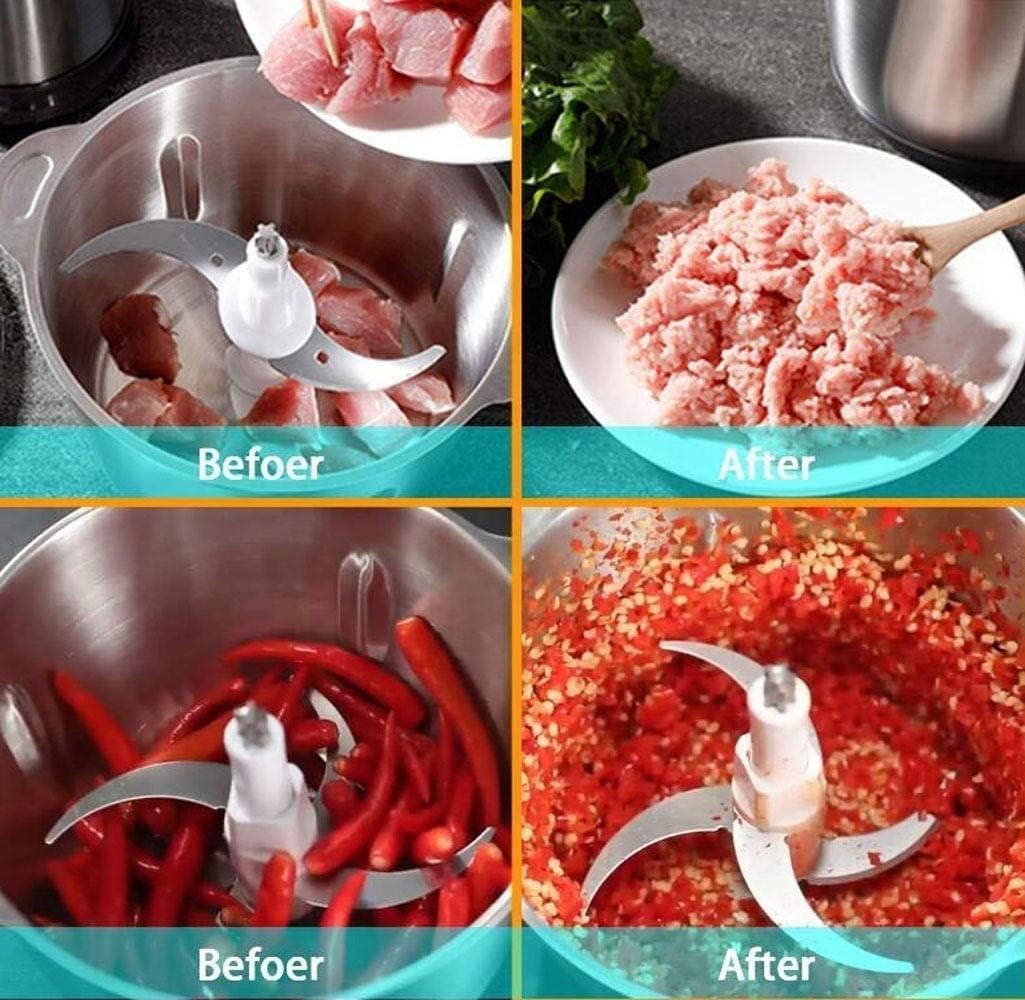 Best Kitchen Gadget Ever.Which can quickly and evenly chop or cut vegetables, nuts, cheese, meats and fruits. FEATURE: *It's easy to use and will save you much time, perfect for fast chopping of vegetable like tomatoes, onions, garlic, carrots, chillis, meat etc. before sauteeing. This is really nice helper in your kitchen. *The electric food processor takes advantage of 4 S-shape upper and lower blades that chops meat evenly, minces garlic/herbs quickly, Your cooking will be much easier than ever with this food processor. SPECIFICATIONS: - Rated power: 300W - Size: 24*29*20 cm - Constant working time: Less than 30 seconds - Breaking time: More than 2 minutes - Bowl Capacity: 2L Food grade 304 stainless steel bowl - Big Pressing Switch, elegant and very easy for operation - Undetachable blade(4 knives) for uniform grinding various food