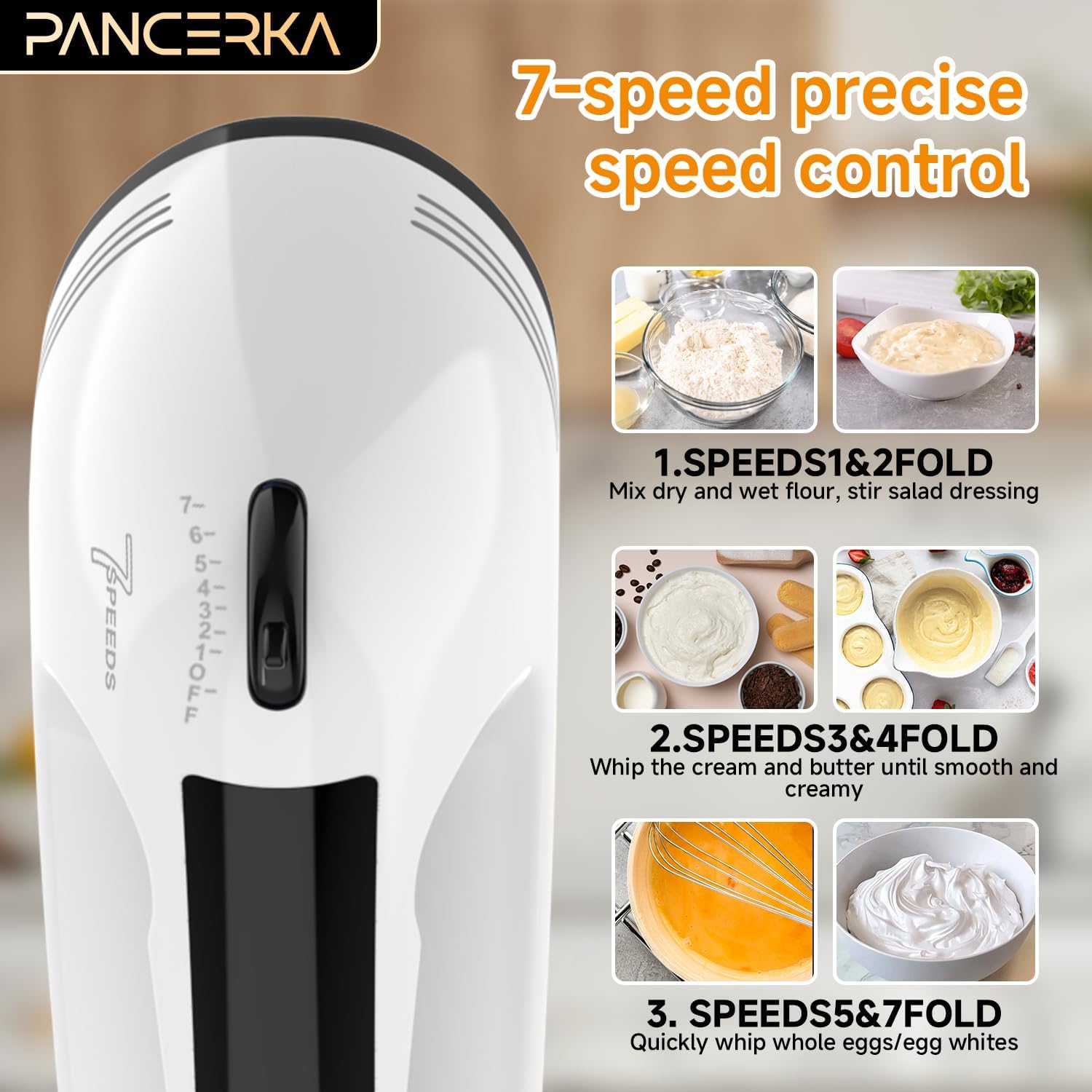 PANCERKA Electric Hand mixer - 7 Adjustable Speed 200W Handheld Mixer Electric Whisk with 5 Stainless Steel Accessories (2 Beaters, 2 Dough Hooks And 1 Whisk)、storage box, Turbo Boost/Self-Control Speed + Eject Button Food Beater for Cakes Eggs