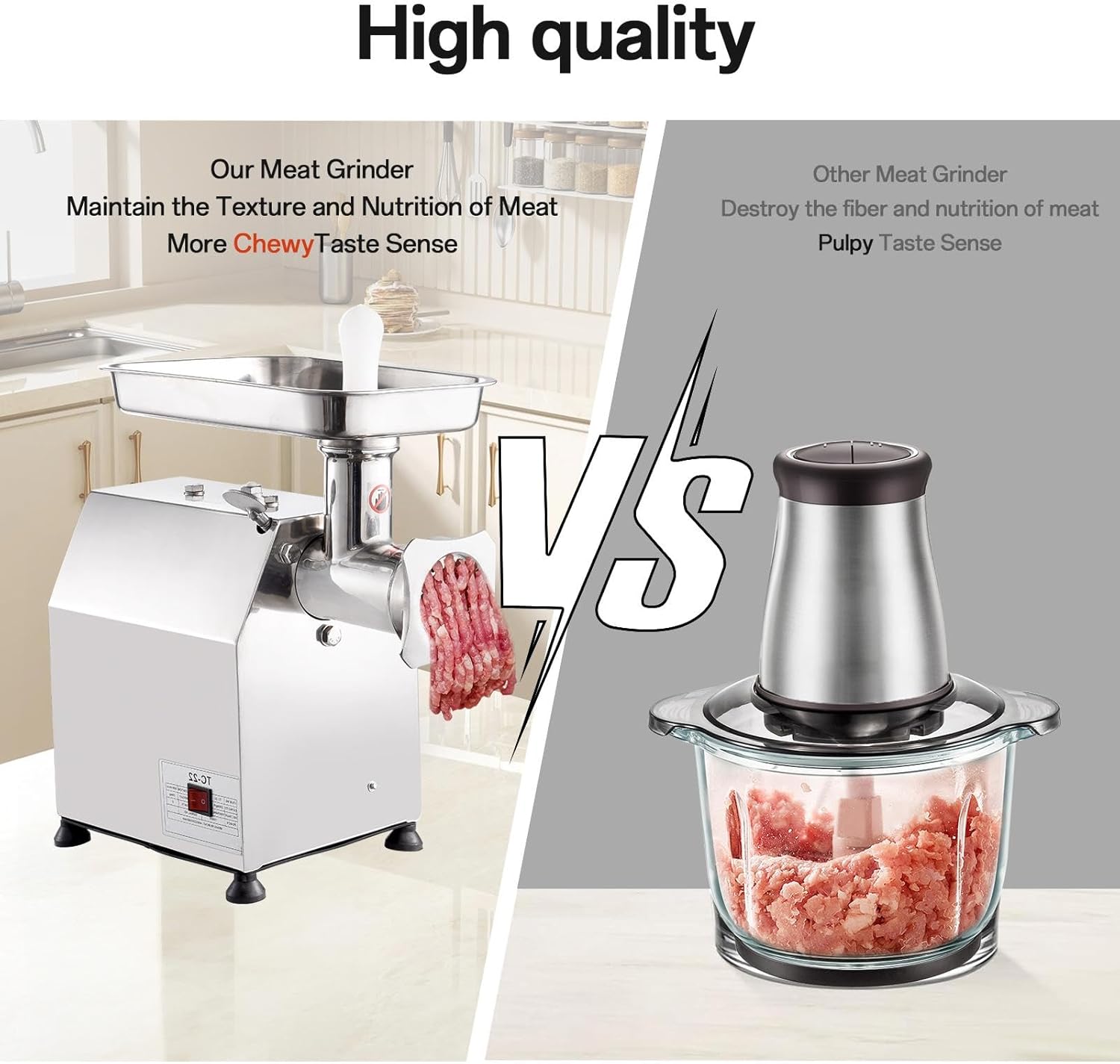 Introducing our Meat Grinder Machine, the ultimate solution for your food preparation needs. Designed with efficiency in mind, this powerful unit allows you to transform various types of meat into delicious ground options, minimizing waste and maximizing flavor. Whether you're preparing Italian pepperoni, savory sausages, or convenient luncheon meat, this versatile machine handles it all with ease. Crafted from durable stainless steel, our Meat Grinder Machine not only ensures longevity but also maintains hygiene during food processing. Its robust 1.0hp motor provides ample power for both commercial and home use, making it perfect for chefs, caterers, or anyone who enjoys cooking at home. Imagine the convenience of creating your own ground meat blends, tailored to your taste preferences, and the satisfaction of knowing exactly what goes into your meals. This machine is designed for those who value quality and efficiency in the kitchen, allowing you to explore endless culinary possibilities. Included in your purchase is the Meat Grinding Machine, equipped to meet the demands of any kitchen. Elevate your cooking experience and enjoy the benefits of homemade ground meat with our reliable Meat Grinder Machine. Make it an essential part of your kitchen toolkit today!