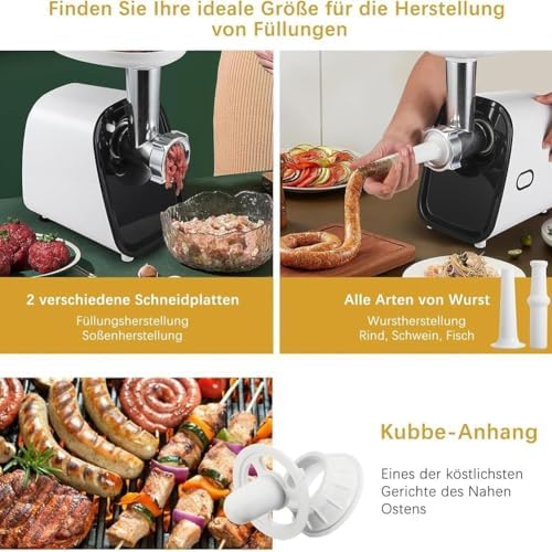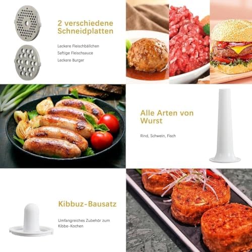 Introducing our versatile sausage tying and knotting machine, designed for both homemade sausage enthusiasts and food processing facilities. This efficient sausage knotting machine significantly enhances productivity, making it easier to craft delicious summer sausage and smoked sausage. **Product Details:** - **Name:** Electric Meat Grinder - **Material:** Durable Stainless Steel, ABS & Plastic - **Mold Options:** Sector knife net for 5/7 mm cuts - **Dimensions:** 335 x 150 x 220 mm - **Net Weight:** 2.4 kg **What’s Included:** - 1 Electric Meat Grinder - 1 Tomato Sauce Maker - 3 Stainless Steel Cutting Discs - 1 Stainless Steel Bowl - 1 Set of Kubbe Attachments - 1 Sausage Tube - 1 Food Pusher - 1 User Manual This electric meat grinder is perfect for home cooks who want to create their own gourmet sausages or for small to medium-scale production in commercial kitchens. The stainless steel construction ensures longevity and easy cleaning, while the various attachments allow for versatile food preparation. Imagine hosting a barbecue with friends, serving homemade sausages that you've crafted with this machine, or preparing meals for your family with fresh ingredients. This product not only saves time but also elevates your cooking experience, allowing you to enjoy the process of making high-quality sausages at home. Please note: 1. Allow a margin of error of 1 mm due to manual measurement. 2. Color may vary based on monitor settings. 3. For any inquiries about this product, please contact us. We are committed to ensuring a satisfactory shopping experience. Elevate your culinary adventures with our sausage tying and knotting machine, making it easier than ever to enjoy homemade sausages.