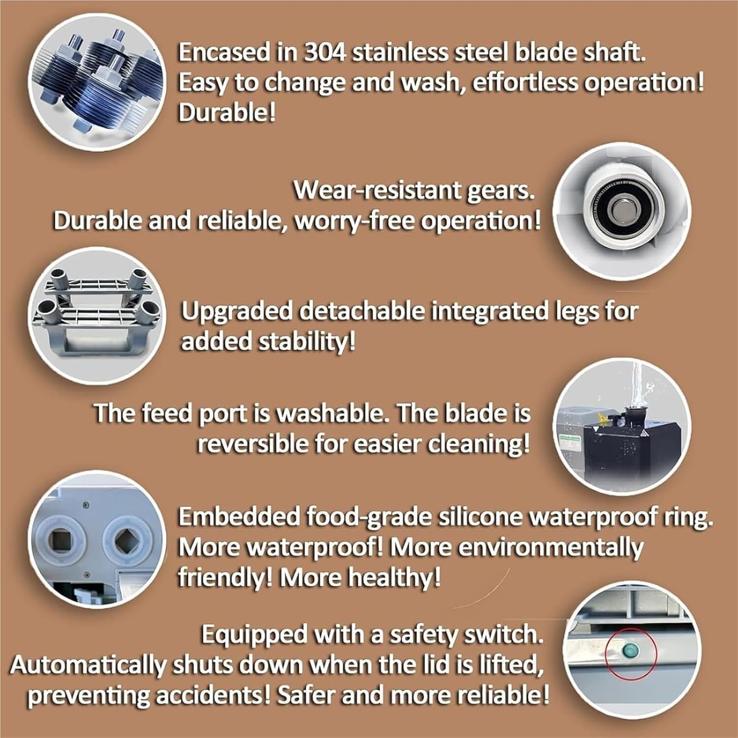 Product Advantages* Detachable bracket design for easy hanging of the onion slicer. The detachable design greatly increases your efficiency in chopping onions in the kitchen.* 304 stainless steel blade shaft, easy to replace and operate! Durable!* Wear-resistant gears, durable and worry-free use!* Upgraded detachable one-piece support feet for greater stability!* Washable feed inlet and flip-up blades for easy cleaning!* Built-in food-grade silicone sealing ring for better waterproofing and environmentally friendly operation!* Equipped with a safety switch that automatically shuts off the machine when the lid is opened to prevent accidents! Safer and more reliable!Product ParametersProduct Name: Electric Onion CutterSpecifications: 2.3mm, 1.8mm, 1.5mmNet Weight: 9.5kgPackage ListElectric Onion Cutter * 1Notes:1. Due to manual measurement, please allow a slight error.2. Due to the different recognition of screen monitors, please allow slight color difference