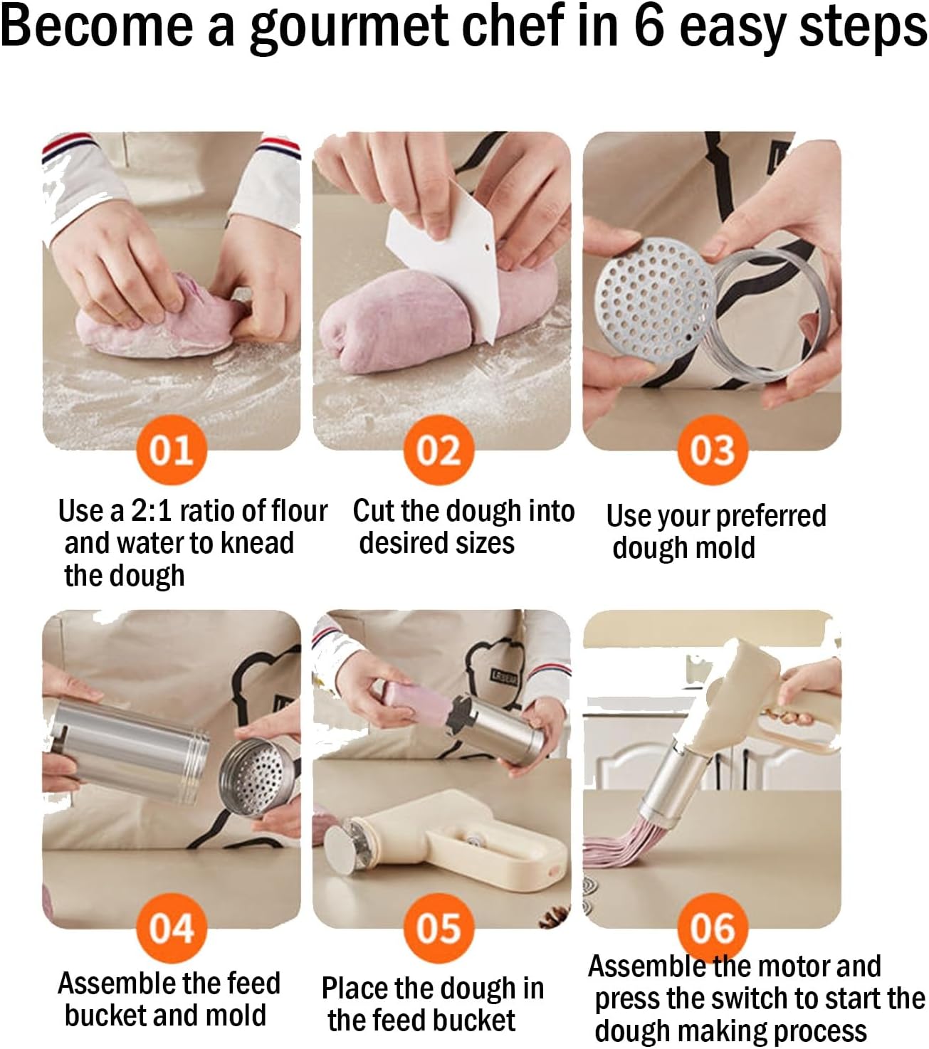 Specification:Name:Handheld Electric Noodle MachineBattery capacity:1800mahCharging interface:Type-C interfaceRate power:7.4v/40WInput Voltage:5V/2aRate capacity:200gPacking List:Handheld Electric Noodle Machine x 1Note:1. Due to the different display and lighting effects, the actual color of the product may be slightly different from the color shown in the picture. Thanks!2. Due to manual measurement, a measurement deviation of 1-3cm is allowed.
