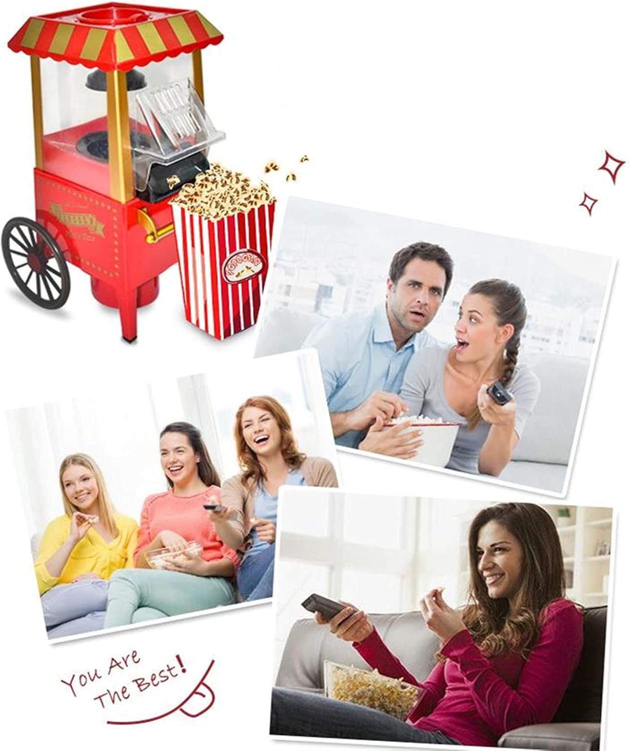This stunning retro popcorn popcorn is absolutely eye-catching and perfect for any party!The operation is simple, just put the popcorn kernels into the hot-air popcorn machine, and then press the start button.Healthy popcorn for movie lovers who like calories.Product name: popcorn machineProduct color: whiteProduct material: metal + non-toxic PPRated power: 1100WProduct size: 18cm/7.09in*40cm/15.75inProduct weight: 2kgPacking information: popcorn machine*1Note:If the voltage does not match, please equip your own voltage converter.The size is manually measured, there may be an error of 0 to 2 cm, which is normal.Due to the differences between different monitors, the picture may not reflect the actual color of the item. Thank you!