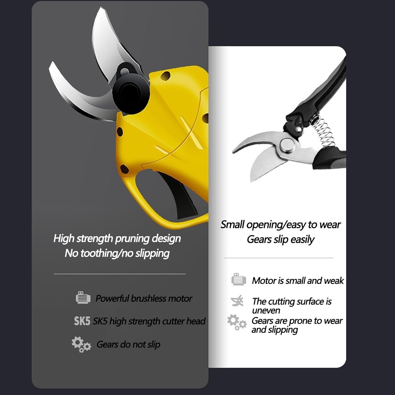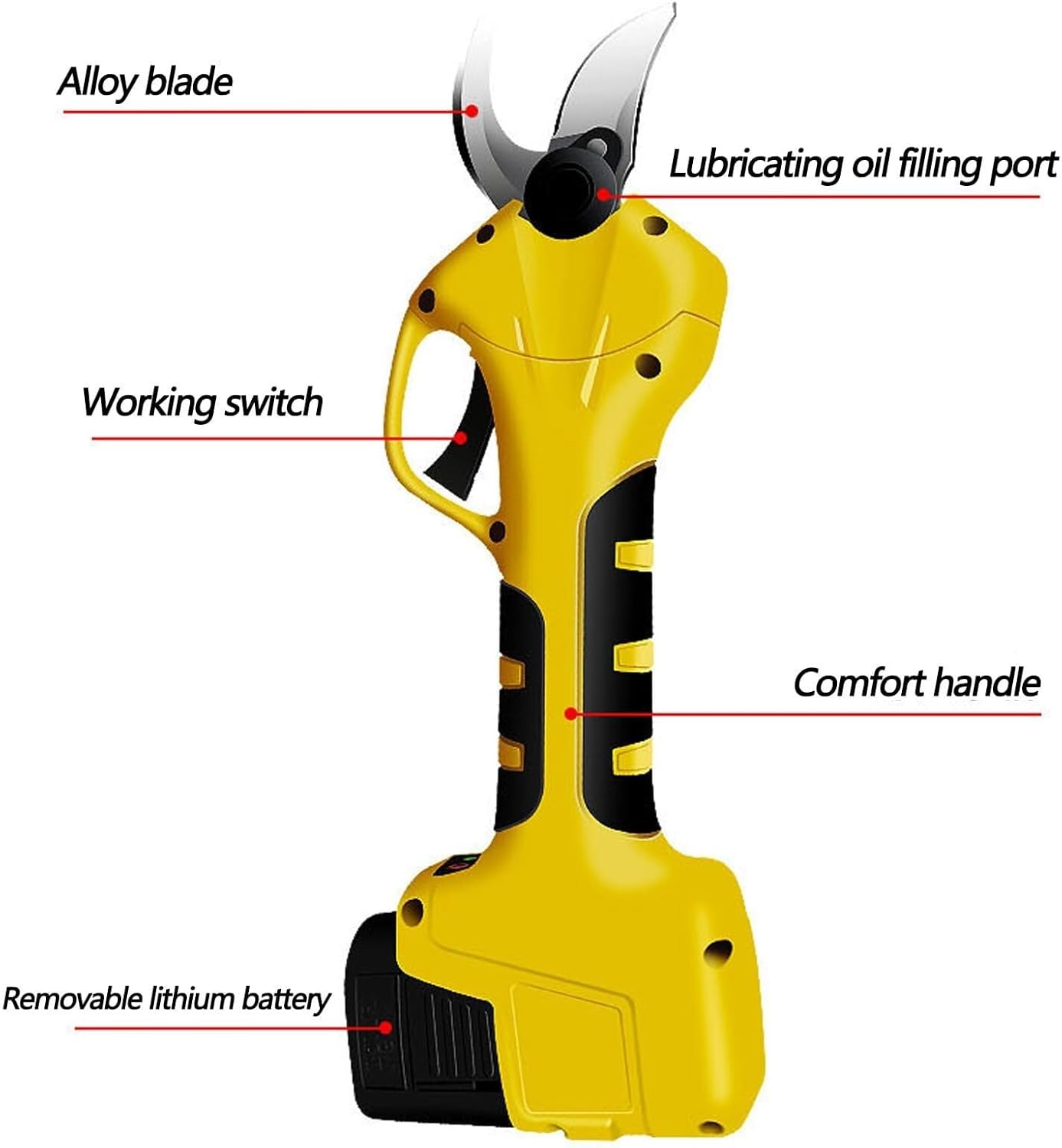 Product name: Electric pruning shears Battery power: 2000mAh Charging time: 1-2 hours Can be cut: 0-2.5cm Scope of application: fruit trees, lawns Specification: A: Original battery*1, charger*1, tool box*1, instruction manual*1, lubricating oil sleeve/hexagonal wrench*1, pruning shears*1, protective gloves*2, whetstone*1 B: Original battery*2, charger*1, tool box*1, instruction manual*1, lubricating oil sleeve/hexagonal wrench*1, pruning shears*1, protective gloves*2, whetstone*1