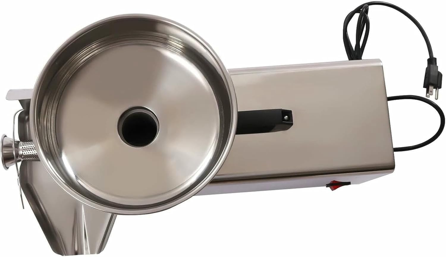 DescriptionSweet jam can satisfy our appetite and bring us good mood, but the tedious sauce-making often makes us feel very distressed. Our sauce maker undoubtedly solves this problem. This sauce maker is composed of 304 stainless steel, which is safe and durable, so you can use it with confidence. It has a high work efficiency, so your different needs can be fully met. At the same time, it can be easily installed, which can save your time. Owning it, you can enjoy delicious jams at any time.SpecificationColor: SilverMaterial: 304 Stainless SteelMaterial of Motor: Pure CopperFrequency: 60hzPower: 450WProductivity: 50kg/h (110lbs/h)Diameter of the Funnel: 214mm 8.4inchNet Weight : 9.5kg/21lbsGross Weight : 11.1kg/24.47lbsProduct Size : 53.5*25*33.5cm 21.06*9.8*13.19inchPackage Size: 53*29.5*36cm/20.87*11.6*14.17inchHow to Use1. Start the machine.2. Put in the materials you want to use.3. After use, disassemble and clean the machine.Package Included1*Sauce Maker1*Funnel1*TroughAll Accessories for Installation