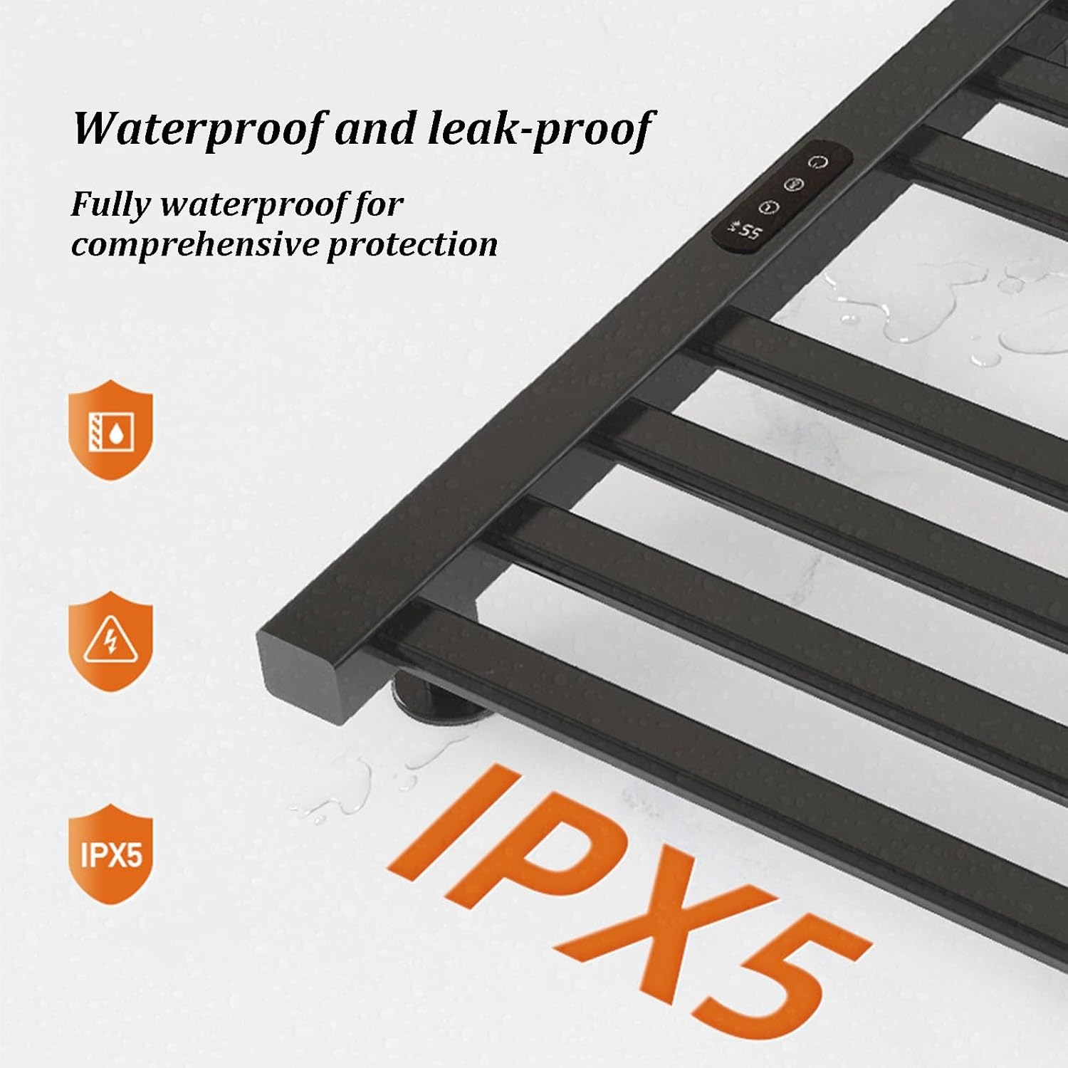 This heated towel rack boasts a large heating area and efficient heat transfer, drying towels evenly and thoroughly. This wall-mounted heated towel rack utilizes carbon fiber heating, making it highly energy-efficient, consuming only 0.2 kWh per hour. Its waterproof design prevents electrical leakage and ensures safety. The plug-in towel warmer is constructed of aircraft-grade aluminum for durability and high-temperature resistance. This versatile towel rack is a reliable towel warmer suitable for any room.Product name: Heated Towel RacksColor: Black, WhiteMaterial: Aviation AluminumSize:5-layer: 50*45*10cm/19.69*17.72*3.94in8-layer: 45*70*10cm/17.72*27.55*3.94inStyle: ModernFeatures: WaterproofApplicable scope: This heated towel rack is suitable for living rooms, bedrooms, balconies, bathrooms, etc. This multifunctional electric heated towel rack can be used as a wall-mounted bathroom heated towel rack, a wall-mounted bathroom heated towel rack, and a bath towel heaterIdeal gift: This electric towel rack is a gift for parents, children, and partners. It can also be used as a thoughtful gift for Christmas, Halloween, birthdays, housewarming, weddings, or thanking relatives and friendsPackage Include:1* Wall Mounted Bathroom Heated Towel Rack