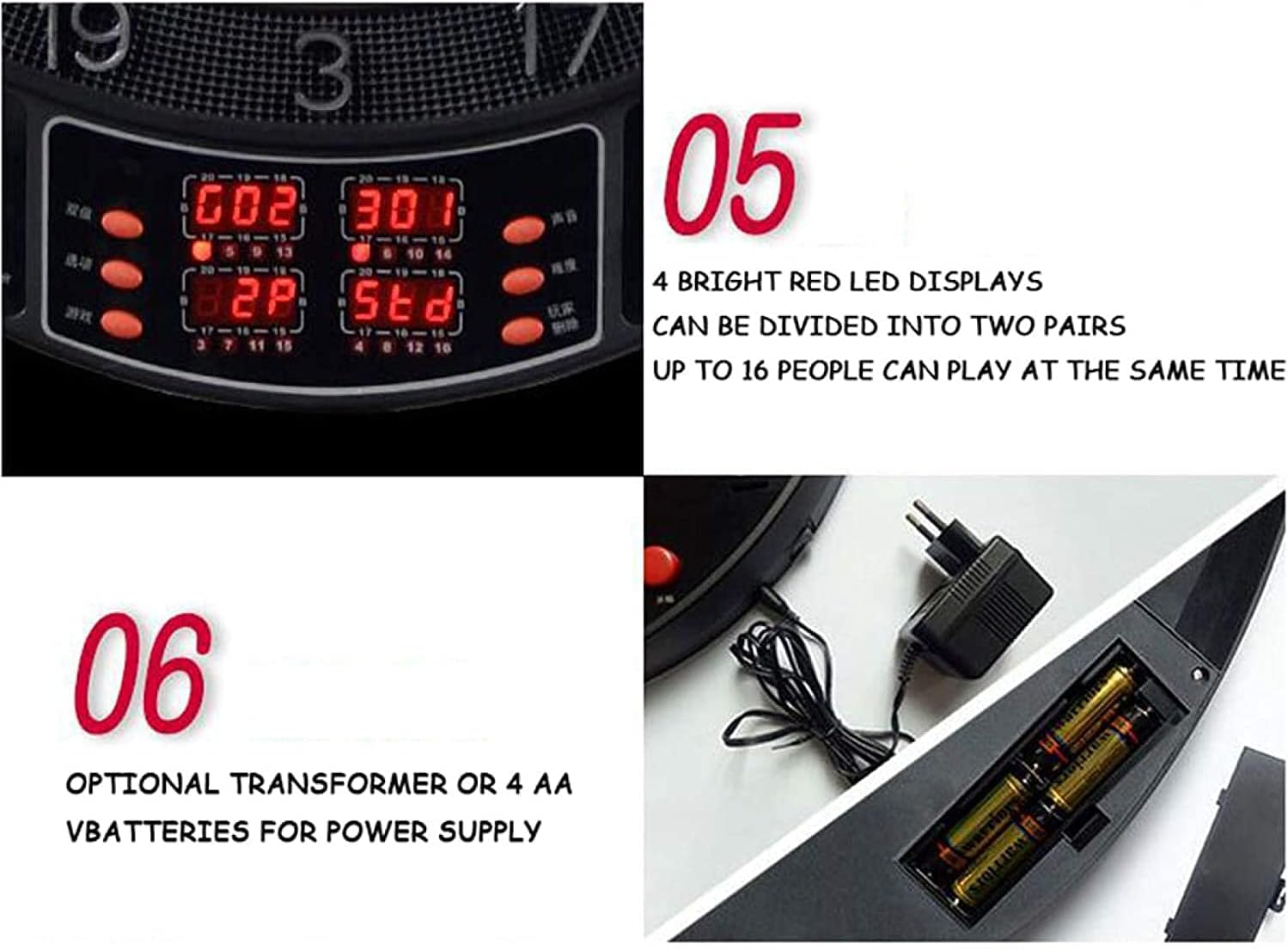 Electronic Dart Board,Darts can provide you with enough entertainment and leisure places indoors and outdoors, suitable for playing with family and friends.Product name: Electronic DartboardProduct size: 500x565x40mmProduct material: PP and ABSVoice prompt: Chinese or EnglishPower supply mode: AA battery or adapter (standard)Display type: 4LED highlight displayProduct accessories: one electronic dart board, 6 darts, 24 dart heads, one manual, one adapterElectronic Dart Board,