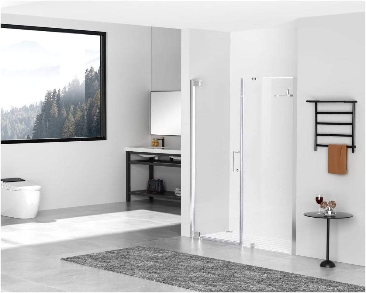 Transform your bathroom into a luxurious oasis with our stunning shower doors! Our doors are designed to offer both functionality and style, making your shower experience more enjoyable and comfortable. Crafted from high quality materials, our shower doors are not only durable but also easy to maintain, making them a practical and long lasting additional to any bathroom. We have four finishes available to choose from to help complement your bathroom decor and aesthetics. Semi-frameless hinged shower door with heavy-duty hinges and in-line panel supported by low profile clips. Full length shower door seal thresholds are included to prevent any leaks.Features:- Material: Aluminum, stainless steel, tempered glass, metal, wood- Finish: Polished chrome, clear- Constructed with premium 8mm tempered glass with safety in mind, use with care- Hardware constructed of aluminum- Semi-frameless hinged glass tempered door with minimal hardware- Finished with a sleek 8 inch aluminum handle- Only one hinged door panel opens either from left or right, door configuration is reversible upon initial installation.- Door threshold and seals are included to prevent leakage- Crystal-clear glass gives the most open and spacious feel- Room use: Bathroom- Product shape: Rectangle- Drawer glide extension: Full extension- Any certification: YesSpecifications:- Product Dimensions: 72"H x 1"W x 60"D- Product Weight: 155 lbs- Warranty: 1 year
