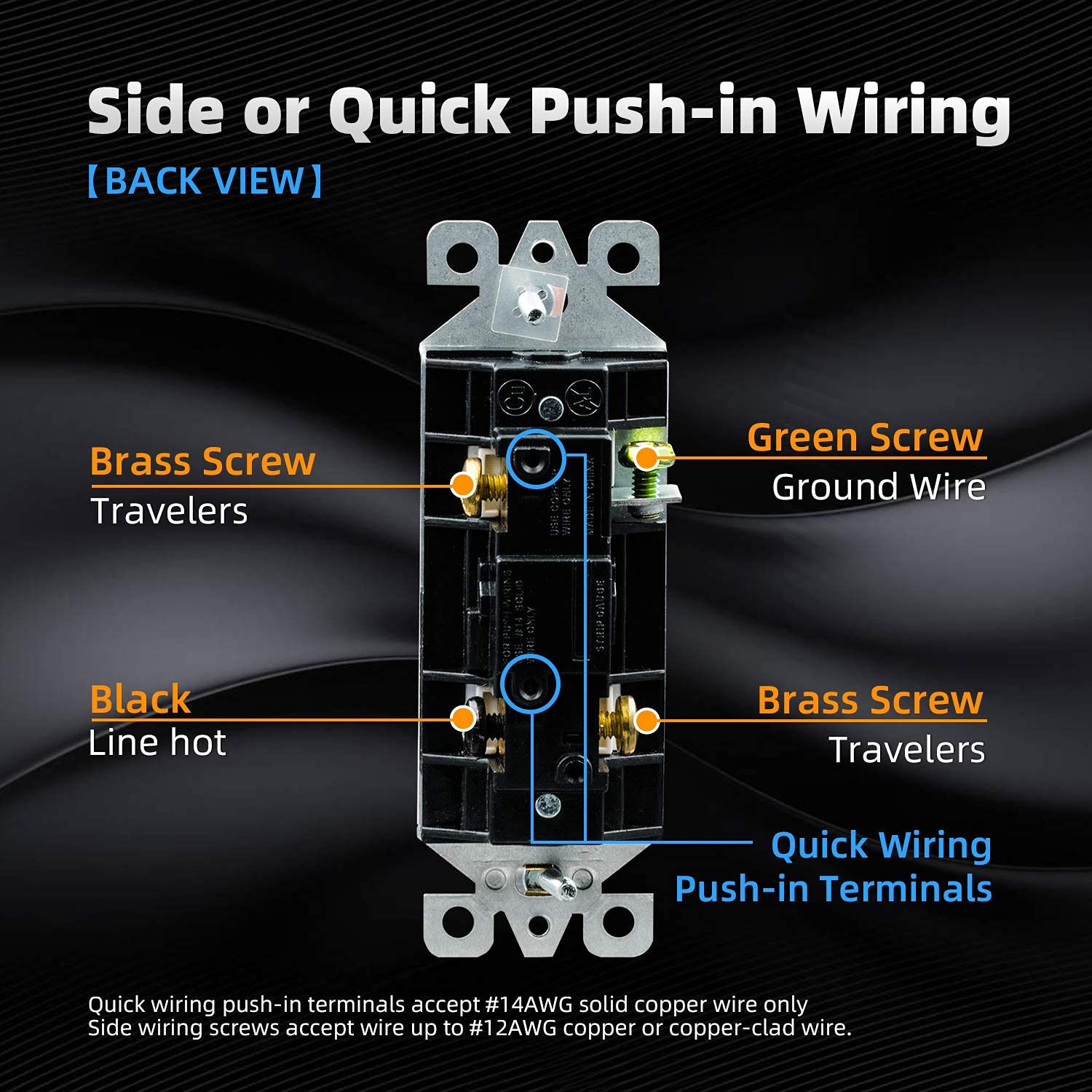 ELEGRP 3 Way Decorative Light Switch, 15Amp, 120/277 Volt, AC Decora Rocker Paddle Wall Switch Replacement, Self-Grounding, Residential and Commercial Grade, UL Listed (10 Pack, Glossy Black) & ELEGRP 1-Gang Screwless Decorative Wall Plates, Standard Size Unbreakable Thermoplastic Faceplate Cover for Decorator Receptacle Outlet Switch, UL Listed (10 Pack, Glossy Black)