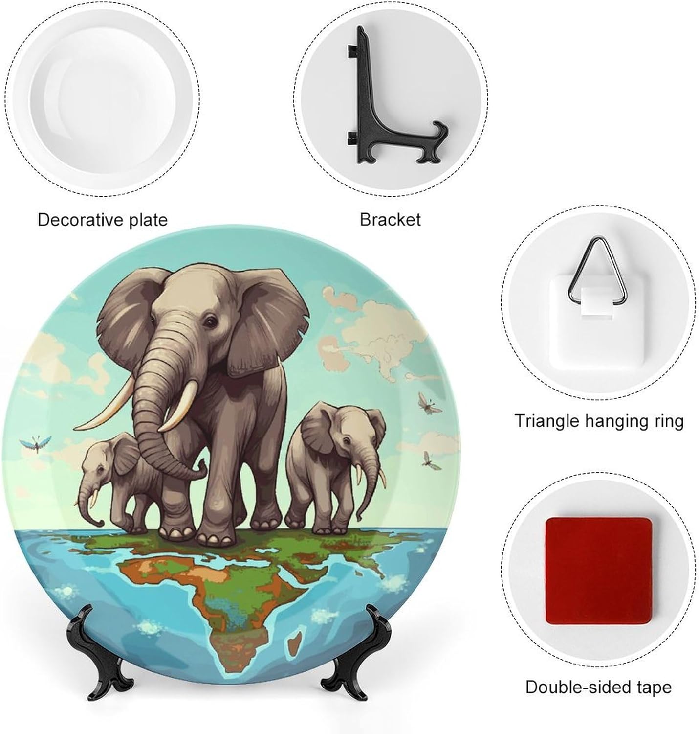 Our versatile ceramic Elephants plates are made of smooth ceramic material. The lightweight bone china plates can be easily placed anywhere you like, showcasing their decorative charm.This bone china dessert plate is available in four sizes: 6 inches, 7 inches, 8 inches, and 10 inches, making it an ideal choice for display items.Personalized decorative plates, perfect for displaying handicrafts, are an ideal choice for home décor. This vertical ceramic plate makes a wonderful gift for housewarmings, anniversaries, weddings, birthdays, Thanksgiving, New Year's, or any holiday.This French country-style ceramic plate is suitable for decorating or using in living rooms, offices, hallways, dining rooms, entrances, hotels, holiday homes, and other places.