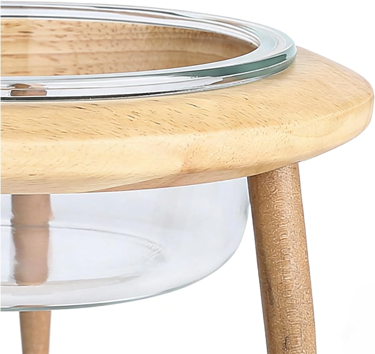 The tilted cat bowl with stand is designed to provide a comfortable feeding experience for your pet while enhancing the aesthetics of your home. This innovative pet dish features an ergonomic tilt that reduces strain on your cat's neck and encourages natural eating position. Ideal for water or food, it seamlessly integrates into any living space including the living room, kitchen, bedroom, playroom, or dining area. Its compact design makes it perfect for apartments or corners where space is limited.SpecificationProduct material: wood, glassProduct weight:600ml: 800g800ml: 1200gProduct size:600ml: about 22x22x13.5cm/8.66x8.66x5.31 inches800ml: about 19x19x13.5cm/7.48x7.48x5.31 inchesProduct capacity:600ml: 600ml800ml: 800mlListElevated cat bowl*1Long leg*3Short leg*3Note:Due to different lighting and screen settings, the item color may be slightly different from the picture.Due to different manual measurements, please allow a 1-2cm difference in size.