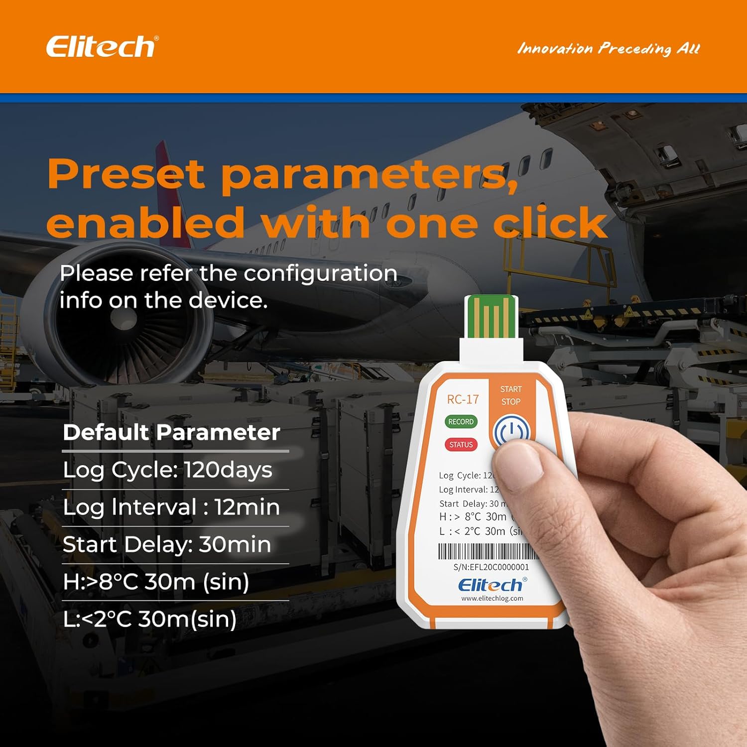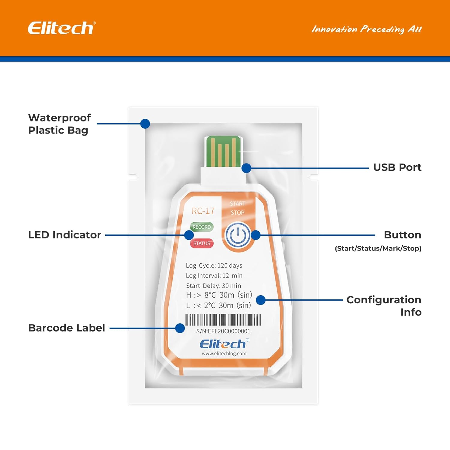 RC-17 Disposable Temperature Logger: The Reliable Solution for Your Cold Chain The RC-17 is a high-precision disposable temperature recorder specifically designed for Cold chain monitoring developed in the food and pharmaceutical industry has a measurement accuracy of ±0.5°C and a wide measuring range of -30°C to +70°C, offers maximum safety for your products. Easy operation and fast data evaluation No calibration or maintenance required Easy USB data export for quick logging Automatic PDF reporting for HACCP audits Reliable performance in any environment IP67 Waterproof Heavy Duty Housing Continuous recording up to 120 days Alarm of excess limit values. Suitable for: Food transport and storage Pharmaceutical Cold Chains Refrigerators & Freezers