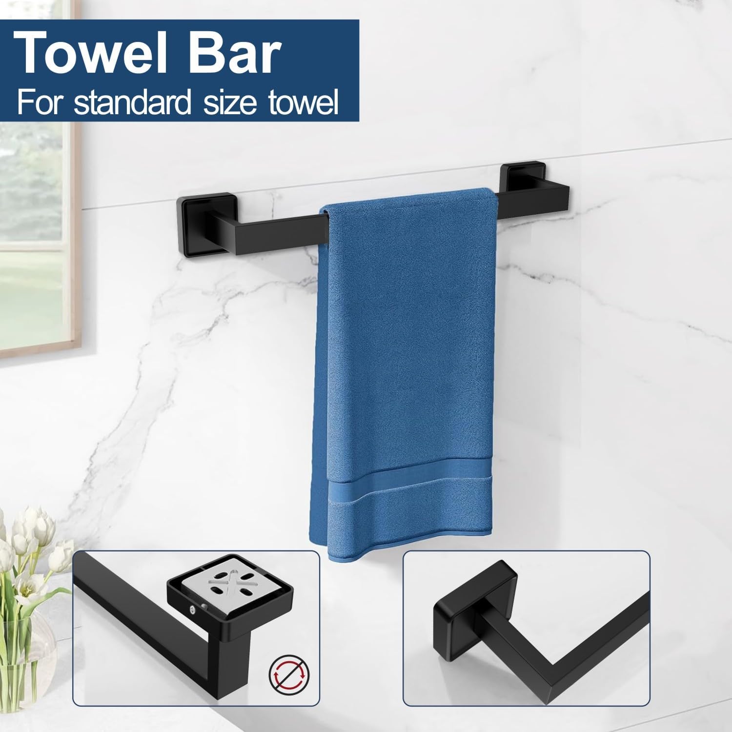 The Set is absolutely beautiful and well-made. Each piece — towel bar, robe hook, toilet paper holder, and towel rings — feels solid and durable thanks to the SUS304 stainless steel construction. The matte black finish adds a clean, modern touch that instantly upgrades the look of the bathroom. Installation was simple, and all the necessary hardware was included. The finish resists fingerprints and water spots, keeping everything looking polished and new. Excellent quality and design — this set looks far more expensive than it is. Highly recommended for any bathroom remodel or refresh