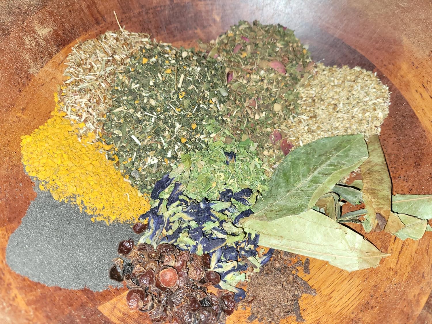 A carefully formulated mix of Stinging nettles, tumeric, Ginger, devils claw bark, yarrow, goldenrod, berdock, rosehips, Elderberry, spearmint, tulsi, parsley, black cumin seed, Rose, red clover blossoms, ceylon cinnamon, soursop, butterfly pea flowers and cloves