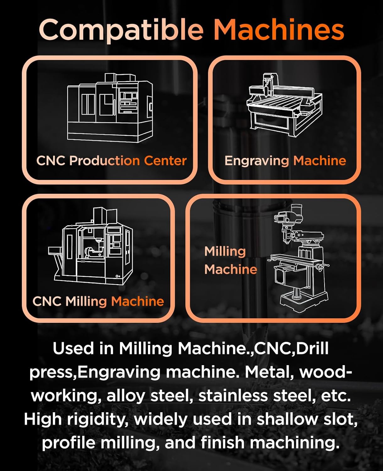 Carbide 4 Flute Square End Mill, Specially designed geometry reinforces the cutting edge’s durability, ensuring maxim toughness and maintaining efficient chip evacuation. High accuracy with and error of -0.005mm, empowering users to achieve professional cutting quality effortlessly. We select tungsten carbide rods as our raw material. This material boasts high wear resistance. Heat resistance and outstanding cutting performance. Used in Milling Machine.,CNC,Drill press,Engraving machine. Metal, woodworking, alloy steel, stainless steel, etc. High rigidity, widely used in shallow slot, profile milling, and finish machining. We are here to help everyone in using efficient cutting tools, to create higher quality innovative products. We are leading manufacturer more than 15 year which specializes in designing and manufacturing and processing of cutting tools such as solid carbide end mills, drills, taps and reamers. As a tool manufacturer rooted in China, We aimed to win the trust and praise of a large majority of customer as well as a vast market by virtue of its high technologies, solid quality, reasonable prices, complete catalog and good services.