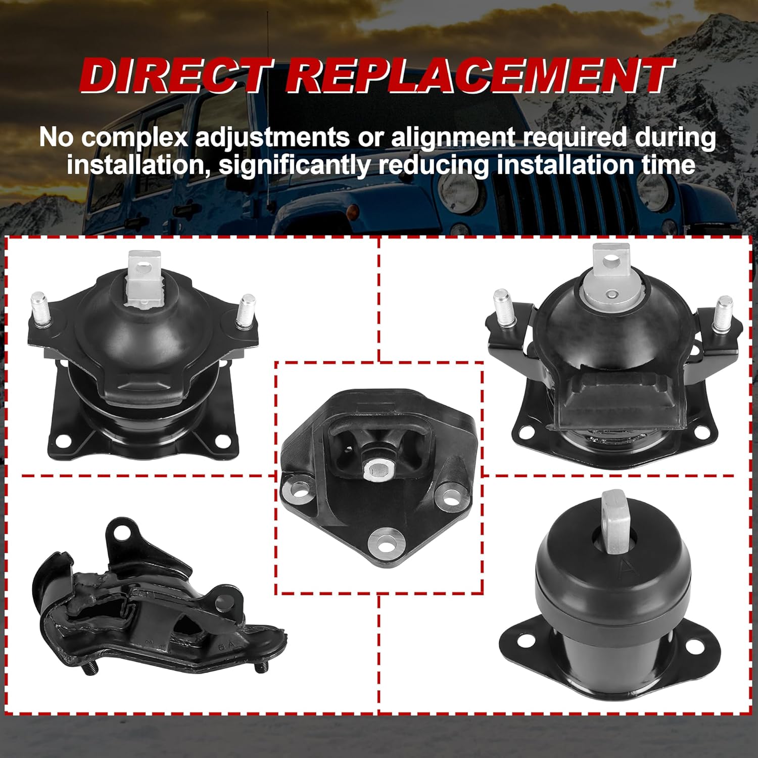 | Included Components | 1 x Front Left Auto Trans Mount, 1 x Front Motor Mount, 1 x Front Right Motor Mount, 1 x Front Upper Auto Trans Mount, 1 x Rear Motor Mount |