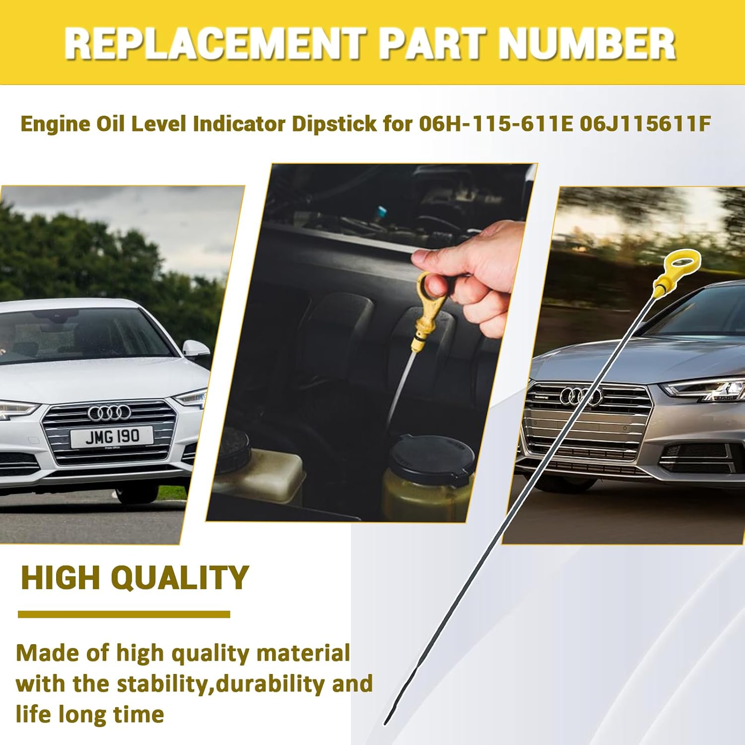 Compatible with:for 2011-2015 Audi Q5 2.0Tfor 2011-2015 Passat B6 ,for 2009-2017 Audi A4 2.0T,for 2009-2017 Audi A4 Quattro 2.0T,for 2009-2017 Audi A5 Quattro 2.0T.Packaging includes:1 x Automotive Replacement Engine Dipstick