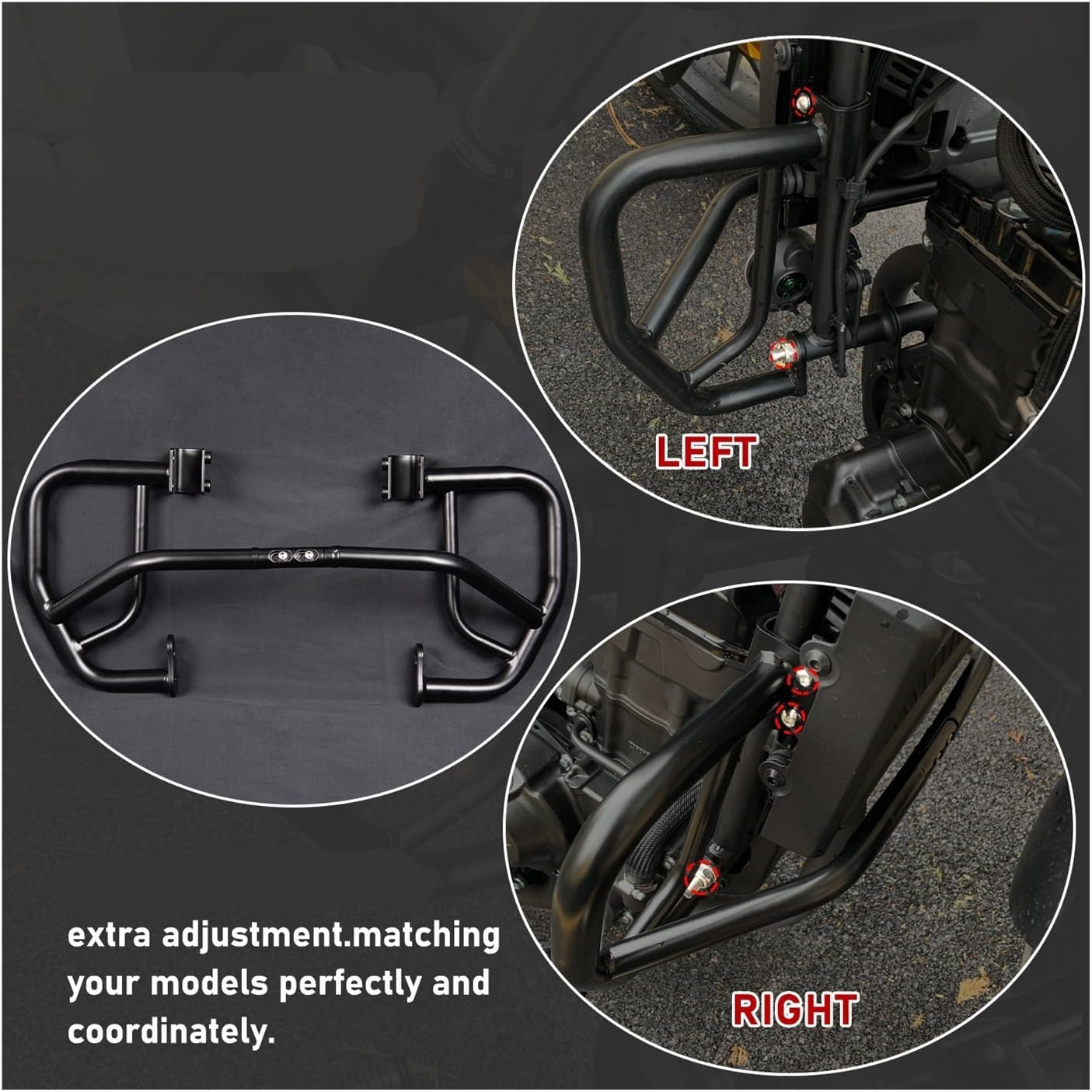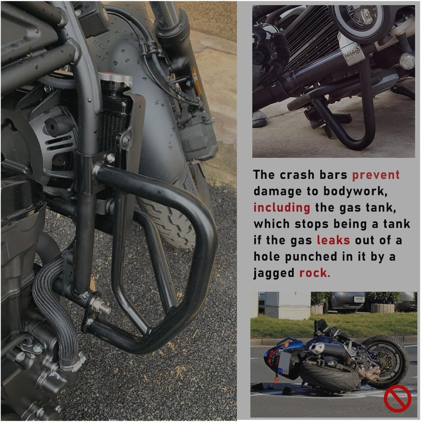 The Motorcycle Side Support Racks has gone through a lot of quality and safety tests, reliable performance, can seal wellFitment:For HREBEL CMX300 2017-2022For REBEL CM300 2017-2022Description:Item: Motorcycle Crash Bar:SteelColor: BlackPackage:1 SetFeatures:1.Made of Coated tubular steel, protection of important motorcycle Engine parts.2.Reducing damage to motorcycle engines and body panels when it falls on the side. The crash bars prevent damage to bodywork, including the gas tank3.Protecting the rider can keep the bike from crush the rider's leg. It also keep the rider from getting trapped under the bike in a parking lot.
