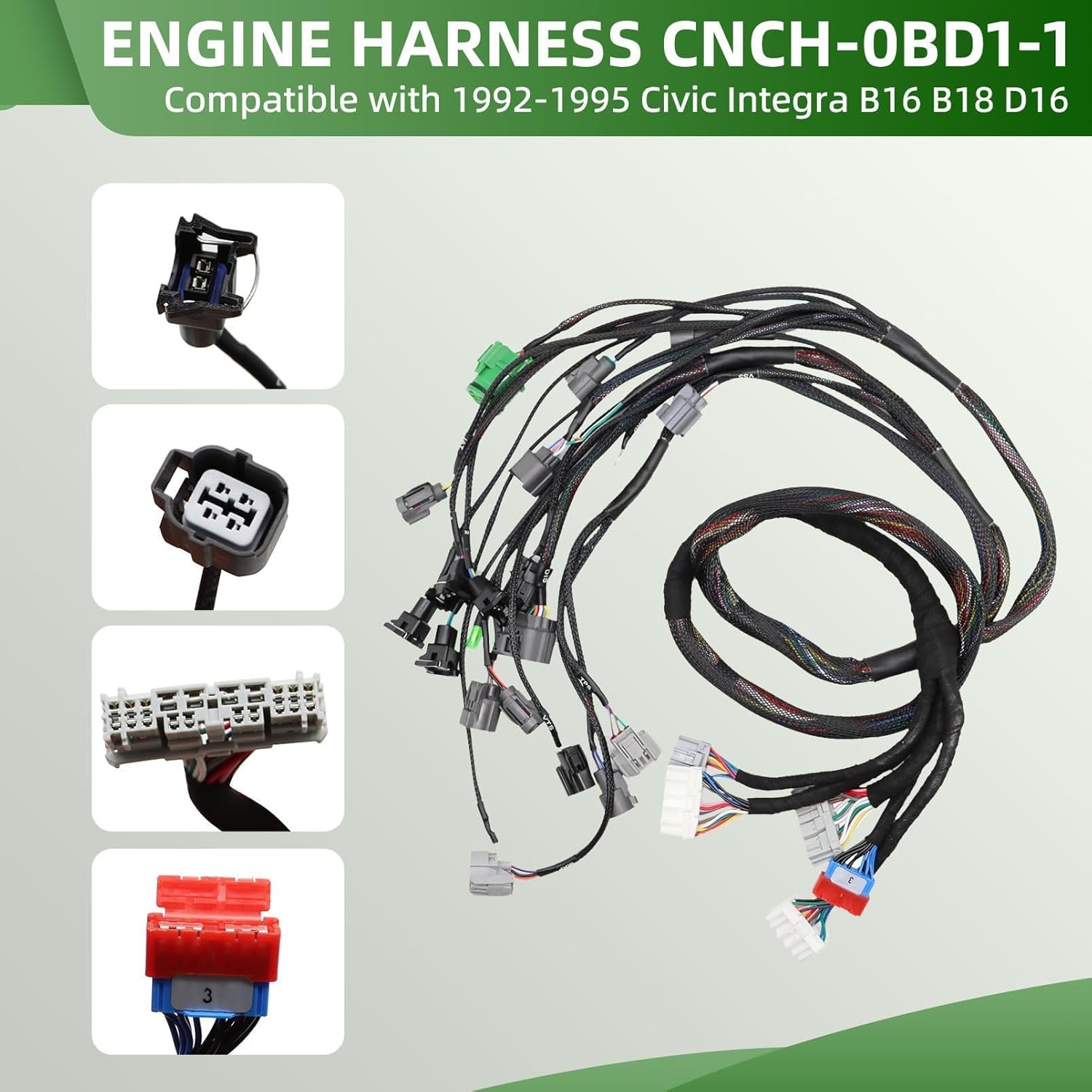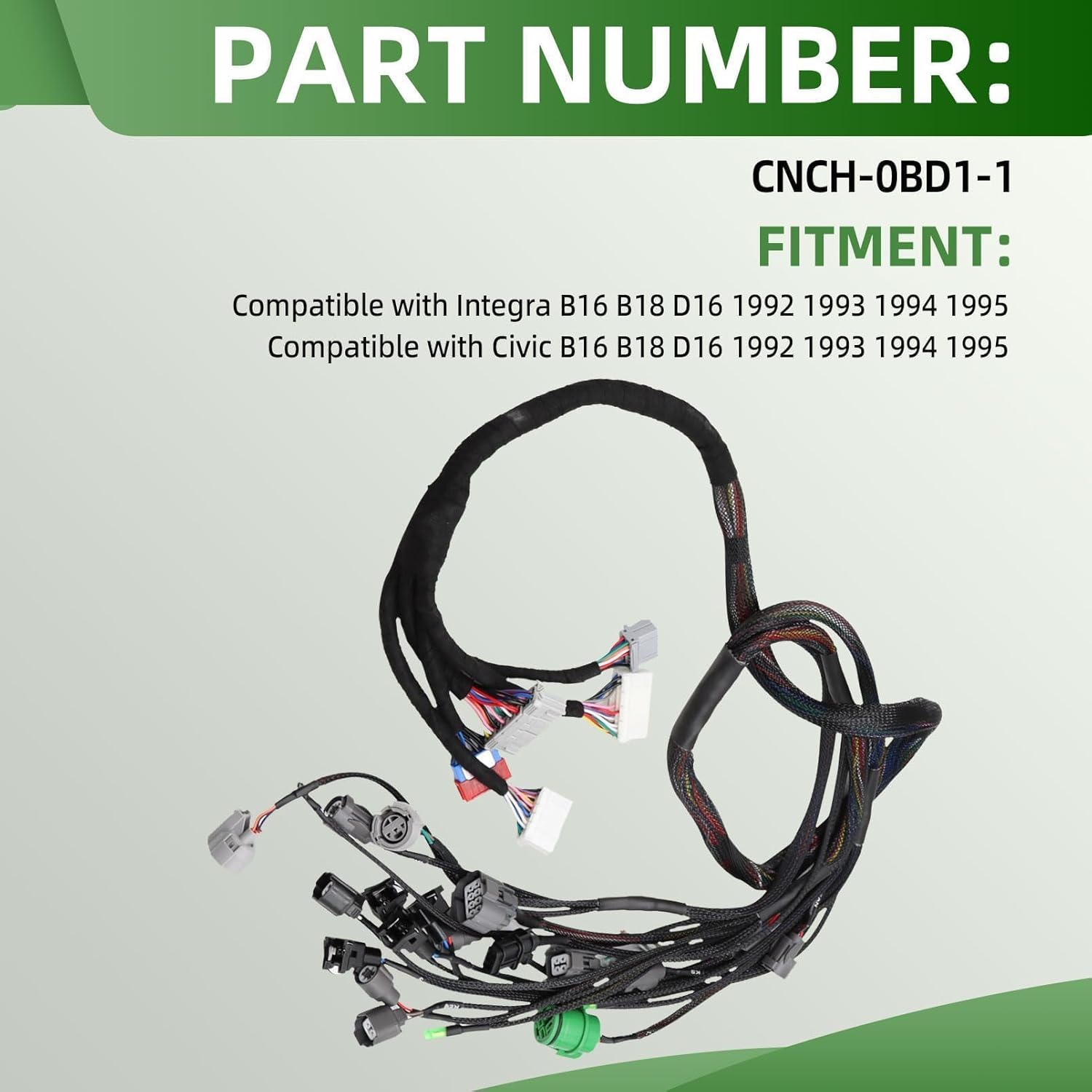Engine Wiring Harness Compatible with Integra Civic B16 B18 D16 OBD1 1992-1995 B/D Series Budget Tucked CNCH-0BD1-1