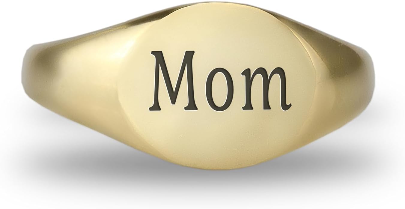 This engraved mom ring is a heartfelt piece of jewelry designed to celebrate the love and bond within a family. Crafted from high-quality 14k gold, this round-shaped signet ring features a delicate design, perfect for daily wear or special occasions. As a custom mom ring, it can be personalized with text, making it an ideal gift for Mother's Day or any special moment. Whether as a family ring or a personal keepsake, this women's delicate ring adds elegance and meaning to any jewelry collection.