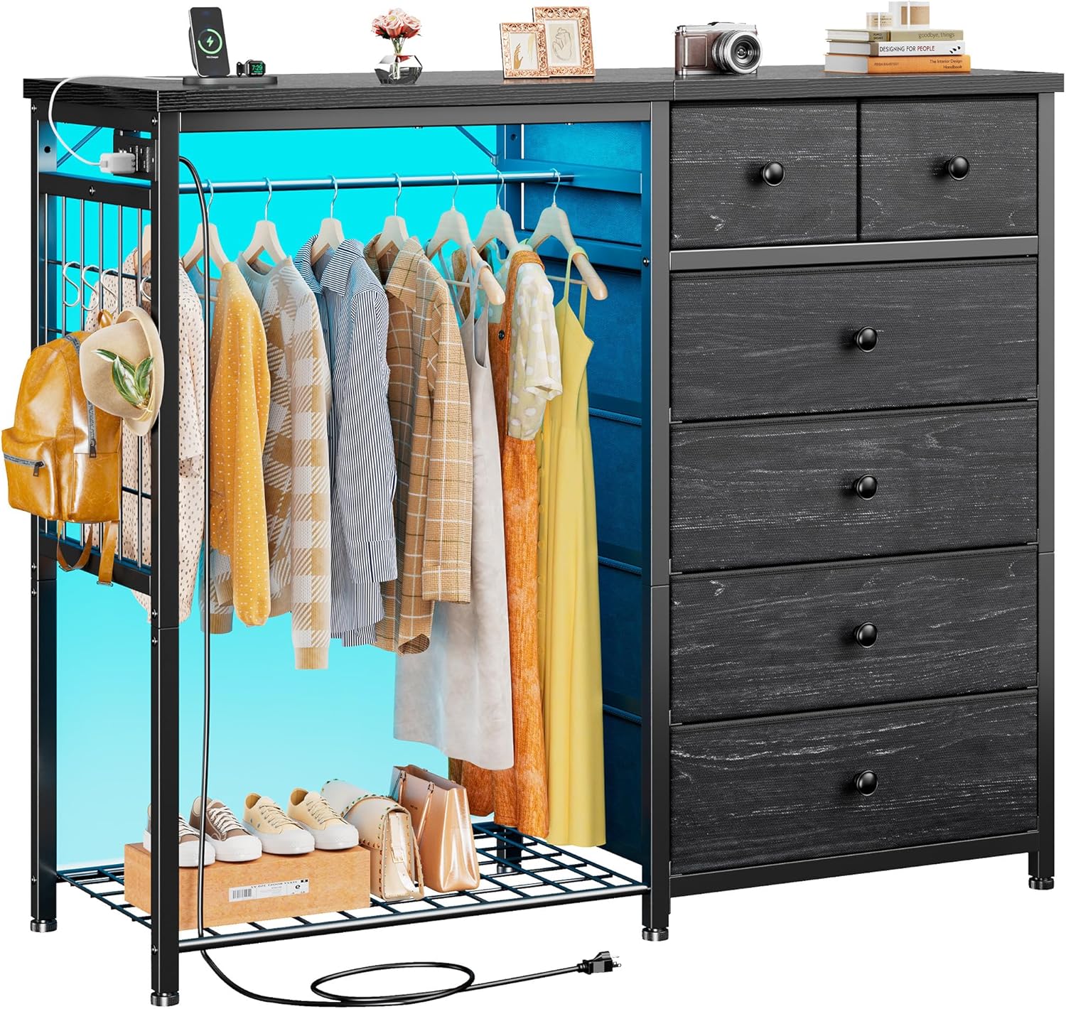 | Included Components | 6 drawers dresser, Hanging Rack, LED Light Strips, Power Outlets |