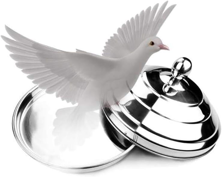 The empty pan is lit on fire (if desired), covered, then instantly uncovered to reveal candy, prizes, lots of silk scarves or streamers, flowers - or even a dove or small live animal! Items (not included) produced are limited only by what will fit in the pan. You can also BAKE A CAKE!