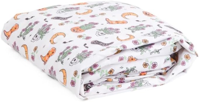 Transform your bedroom into a whimsical Halloween wonderland with this charming Envogue sheet set. The playful pattern features orange cowboy boots, crescent moons, flowering cacti in skull planters, and tiny bats scattered across a crisp white background - perfect for adding a touch of spooky Western flair to your space. These sheets are crafted from brushed polyester material that's been specially treated for exceptional softness, ensuring a cozy night's sleep. The unique design combines Halloween motifs with desert elements for a distinctive look that works well beyond the holiday season. Machine washable for easy care, these sheets maintain their vibrant pattern and soft feel through repeated washing. The set brings together comfort and style, making bedtime more fun while providing the practical functionality you need in bedding. Whether for a child's room or anyone who appreciates unique, themed decor, these sheets add personality and comfort to any bedroom setup.