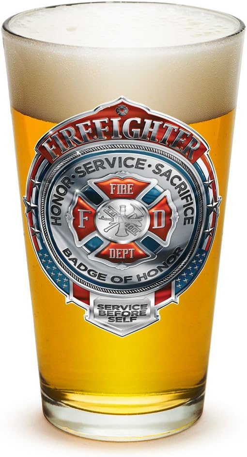 Our Firefighter Pint Glass Set is the gift for the firefighter who enjoys savoring a pint of strong beer or another favorite beverage after a long, hard day on the job. All of our beer glassware features permanently applied decals and is dishwasher safe. Our personalized beer mugs are available in 23 oz. pilsner glasses, shot glasses, or 16 oz. pint glasses. Durable: Our 16 oz. glasses are strong and durable, oven-baked at low temperatures. These personalized beer mugs are made of , heavy-duty glass and feature a stylish design to honor all the firefighters in your family. Easy-to-clean bar glassware without worrying about breakage. Multipurpose: This bar glassware serves as many purposes as you need and is practical for everyday use. Our firefighter merchandise is for game day events, poker, and bachelor parties. for commercial use as well. Our bar glasses are ideal for your restaurant, pub, bar, or club. We know you'll love our firefighter merchandise as much as we do. Every decal on our bar glassware sets is applied by hand, ensuring impeccable quality. Gift Idea: Our firefighter merchandise for men or women makes the gift for any occasion: Christmas, birthday gifts, wedding parties, Father's Day, etc. Our Irelands Bravest Firefighter glassware is always suitable to show your pride. GLASS SET: Our firefighter line includes pint glasses that measure 16 ounces each. Our firefighter line also features other glassware sets such as Pilsner glasses and shot glasses. Buy them all and make a complete glassware set for all the firefighters in your life!