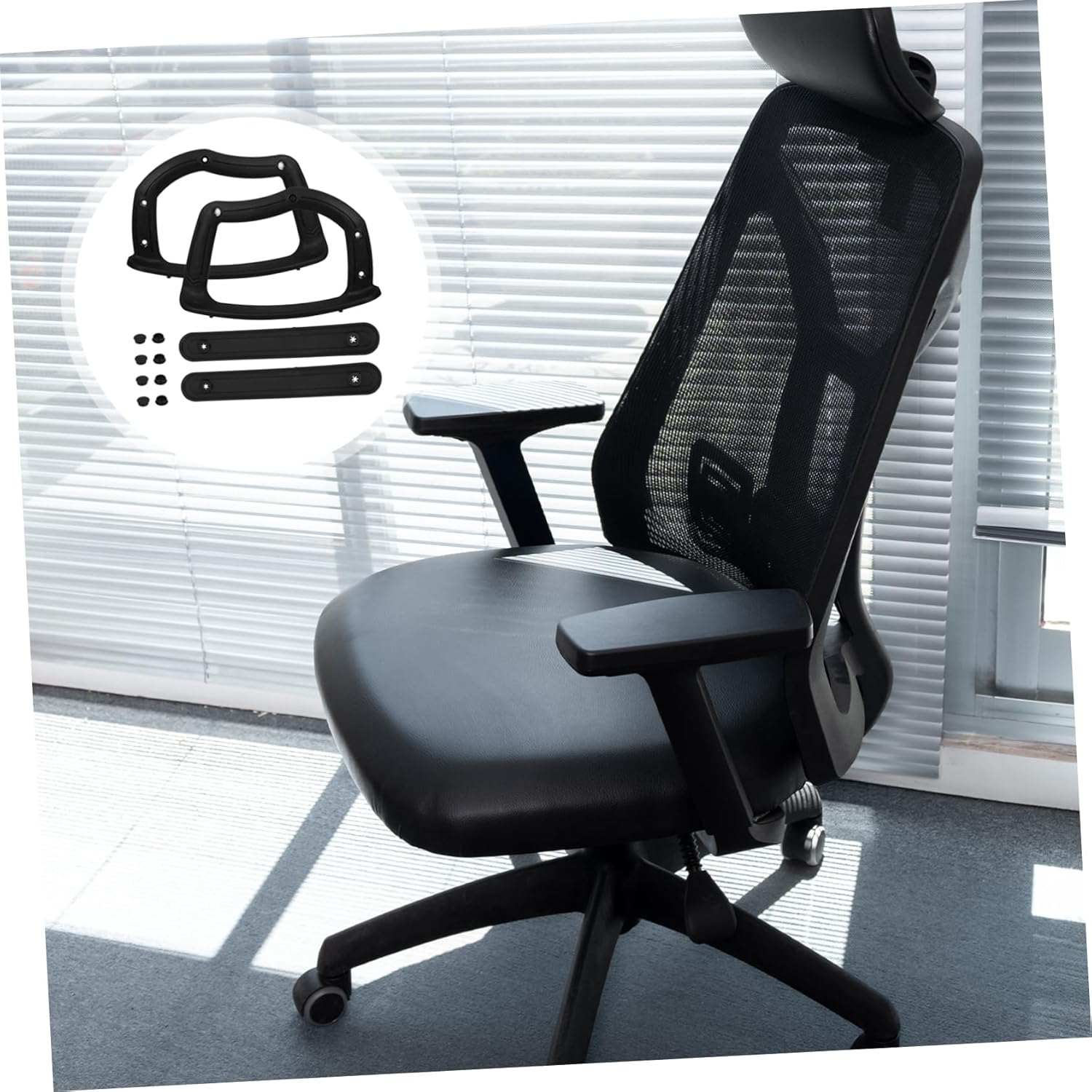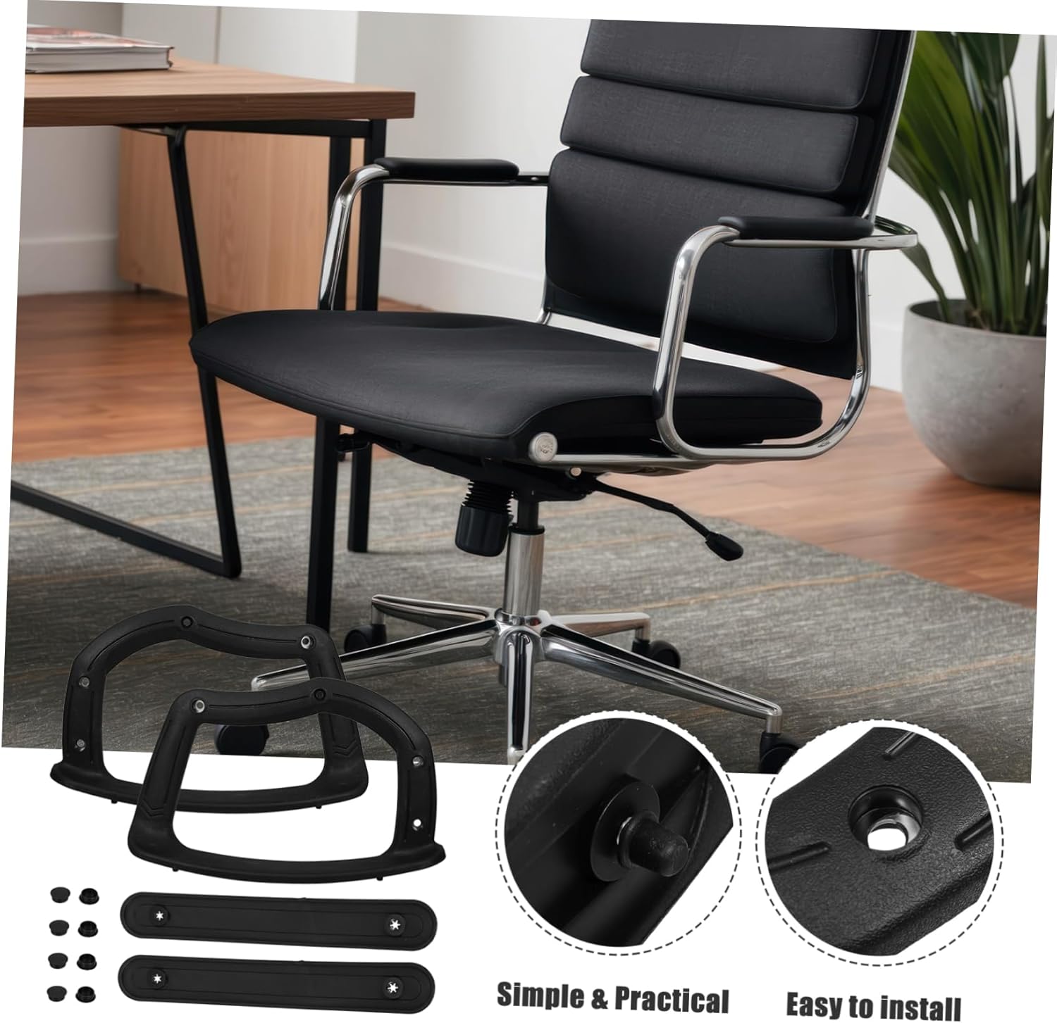 Package List 1 x pair of chair armrests Features -Nice support: offers excellent support to ease discomfort, improving overall productivity office arm chair covers -Size:40.00X25.00X5.60cm/15.72X9.82X2.20in office chair armrest pad -Color:Black office chair arms -Material:Plastic chair arms covers -Universal design: they are suitable for most chairs, such as computer chair, office chair, etc arm rest covers for chair -High durability: made from materials that ensure performance and resistance to damage arm pads for office chairs -Effortless installation: easy to install on various office chairs, providing a simple and quick setup experience arm covers for chairs -Attractive design: features an elegant and modern design that elevates the appearance of your office environment office chair armrest padsGoods Descriptionoffice chair arm rest The replacement office chair parts are easy to install, allowing you to quickly upgrade your chair with minimal effort.replacement office chair parts nice for any office setting, these chair armrests are a practical and stylish addition.office chair arm covers Our office chair armrests are designed to enhance the comfort and functionality of your chair.replacement armrest These office chair armrests are made from materials, ensuring they last through daily use