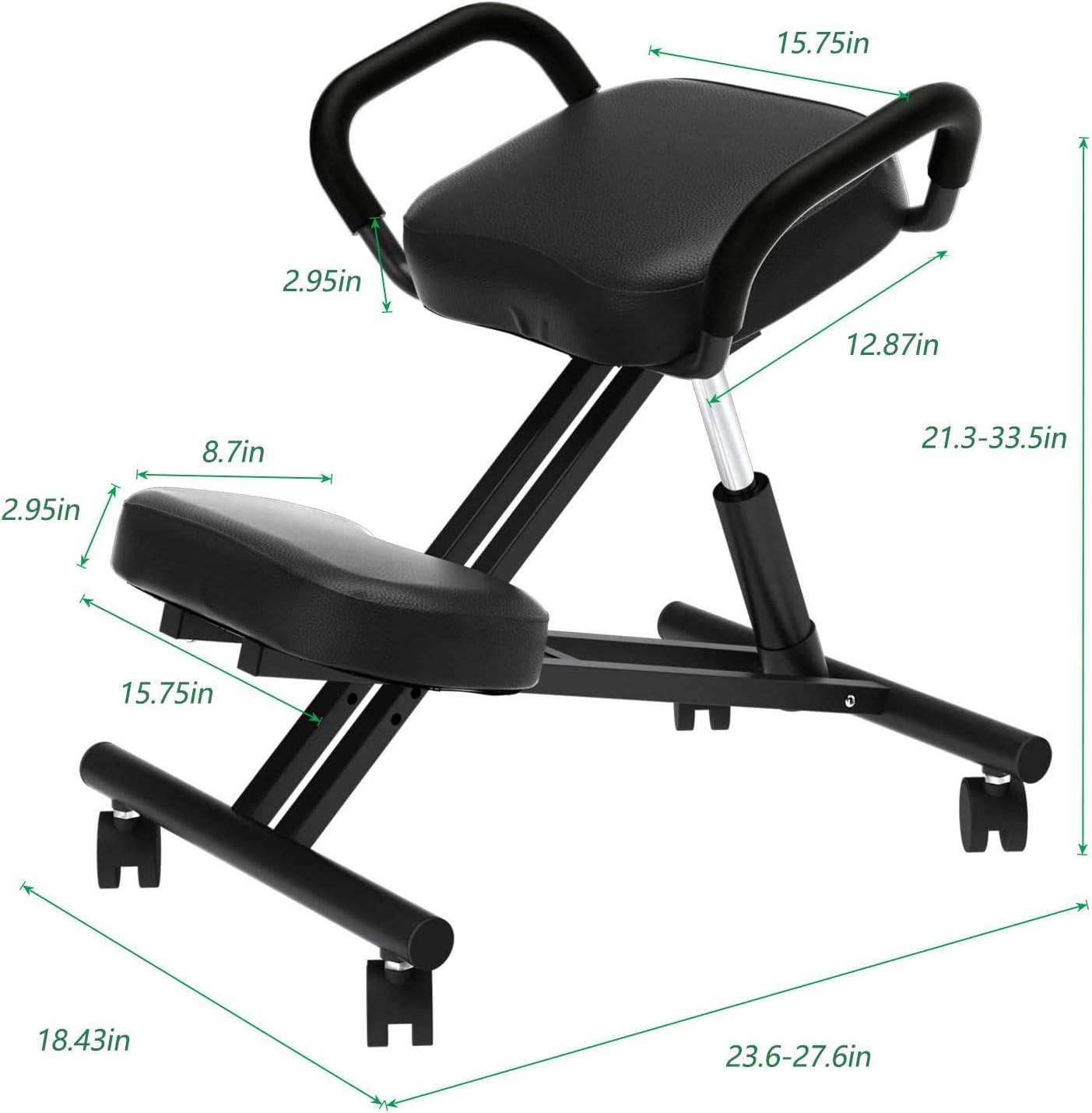 High-quality Professional Wooden Height-adjustable Ergonomic chair, ideal for those who work sitting, it is suggested to use the felt pads included instead of the wheels in order to lower the height of the chair (only in the case that the desk heigh cannot be raised). The angled seat helps to maintain the correct position of the spine and the tilt is adjustable. Its non-deformable padding and very resistant fabric covering are its strength! Beware of other chairs with similar shape sold at bargain prices, made of pinewood and with poor linings and paddings (easily deformable)! To be assembled. The backrest mechanism is equipped with locking and unlocking procedure by pushing the backrest towards the cushion where you sit. The backrest support is useful for people that intend to spend a lot of time in their kneeling chair - but take short breaks to maintain the default upright position. Ideal for those that have a medical condition. Name: Posture Correction Chair Applicable places: home office meeting room, etc. Handrail: fixed handrail Seat cushion kneeling cushion: PU leather soft bag
