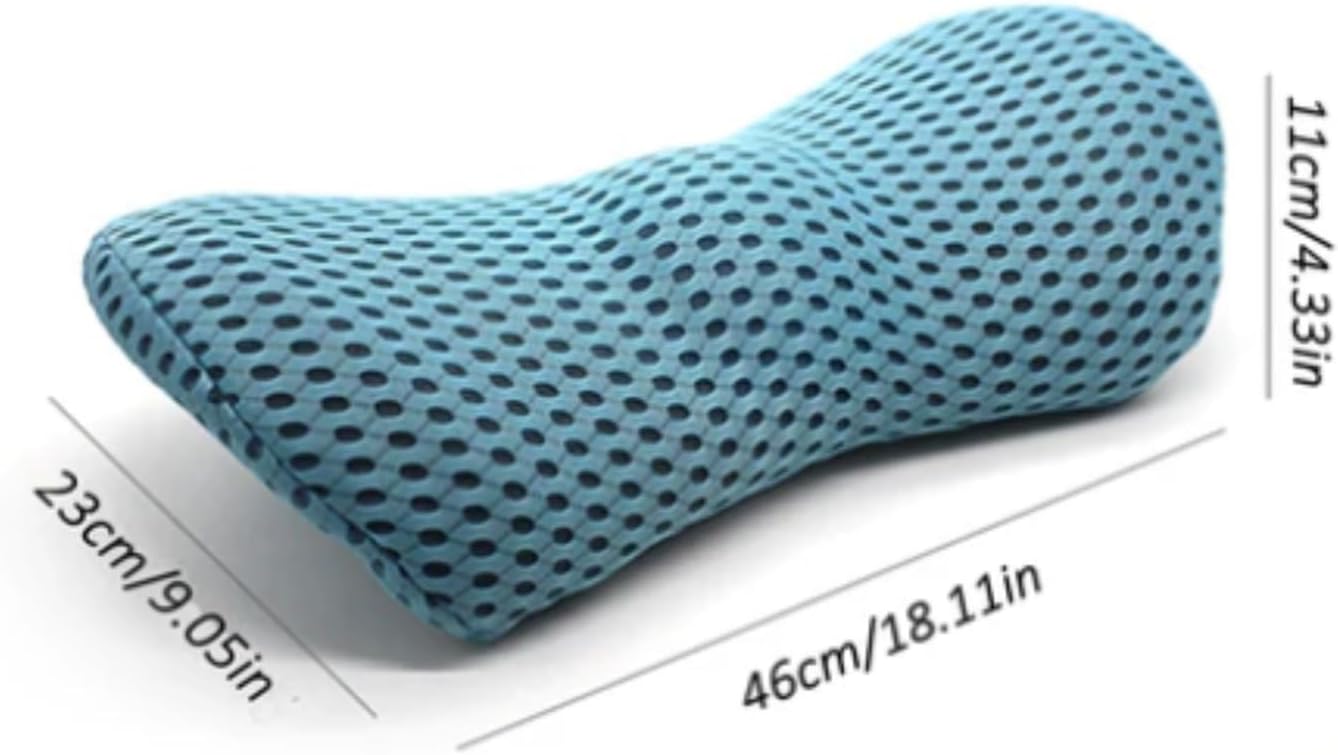 Relieve lower back pain and improve spinal posture with this ergonomically designed lumbar support pillow—engineered to target lumbar discomfort from prolonged sitting, poor posture, or sleep issues. Crafted with premium memory foam cotton, it contours perfectly to the natural curve of your spine, lifting the lumbar area to fill the gap between your back and chair/bed, maintaining correct alignment all day.The unique raised area design releases pressure between vertebrae, while curved sides and rounded edges enhance comfort without digging into your back. The outer layer features breathable mesh fabric that promotes airflow, preventing heat buildup even during extended use (office work, long drives, or sleep). Unlike bulky regular pillows, it’s lightweight and portable, easily moving between office chairs, car seats, sofas, or beds.The removable, machine-washable cover simplifies maintenance—keep it fresh and hygienic with hassle-free cleaning. Suitable for anyone suffering from lower back pain, sciatica, lumbar arthritis, or muscle stiffness, it also aids in recovering from sports injuries and correcting poor posture. Experience lasting comfort and targeted support that regular lumbar pillows can’t match.