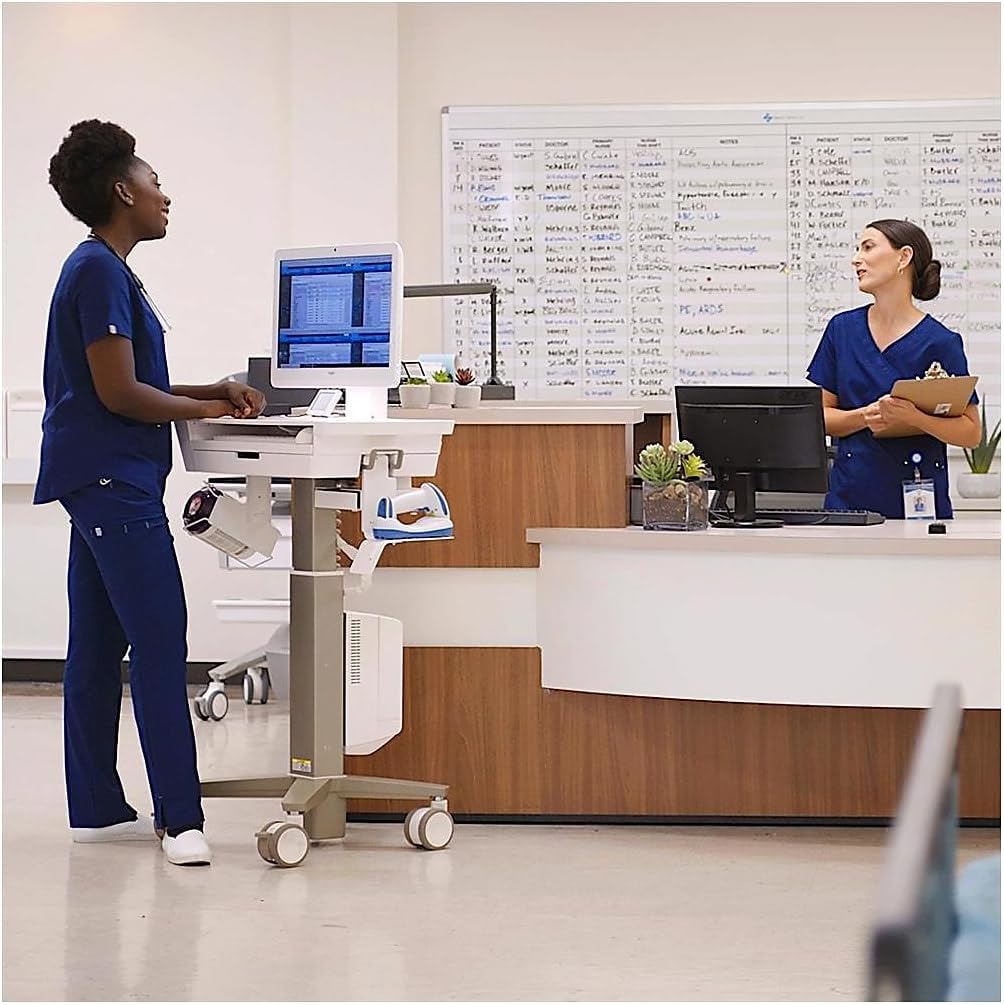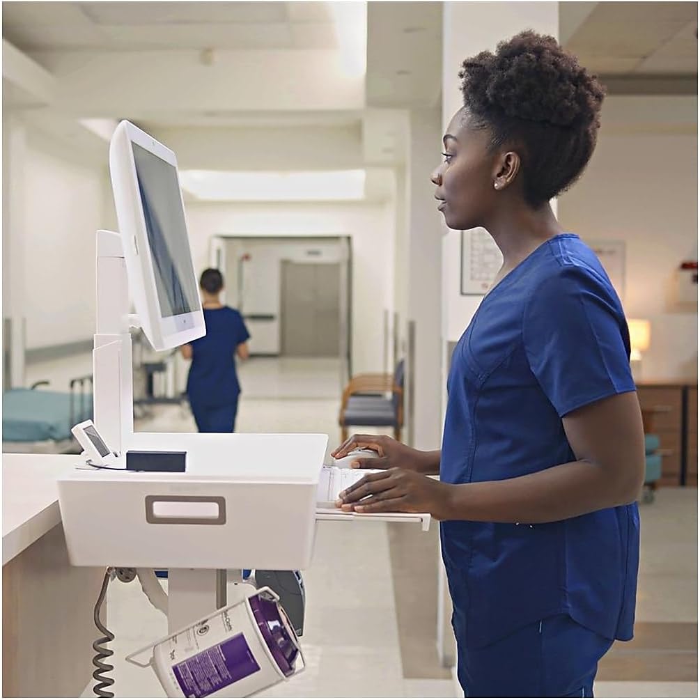 IMPROVED DOCUMENTATION CARTS FIT YOUR PEOPLE, WORKFLOWS AND ENVIRONMENTSThe enhanced design of this ultra-lean, lightweight documentation cart supports larger all-in-one computers up to 20 lbs (9.1 kg) with the warm aesthetic of the CareFit product family. The LCD cart with or without a single drawer offers an expansive vertical range to easily adjust to the ergonomic needs of a broad range of users.The slim depth and small footprint make it a versatile point-of-care solution for a patient's bedside, in a hallway or any other area. When not in use, it fits tightly against a wall to free up valuable space. It's easily customizable with accessories to fit different workflows.