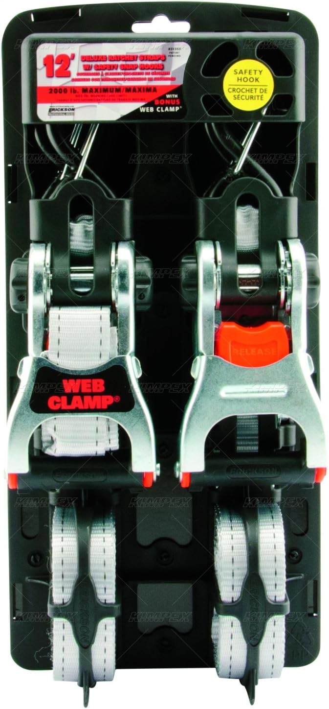 | Included Components | 1.25"x12' 2000 lb Deluxe Ratcheting Tie Downs Gray w/ Web Clamp & / Safety Snap Hks, Pack of 2 |
