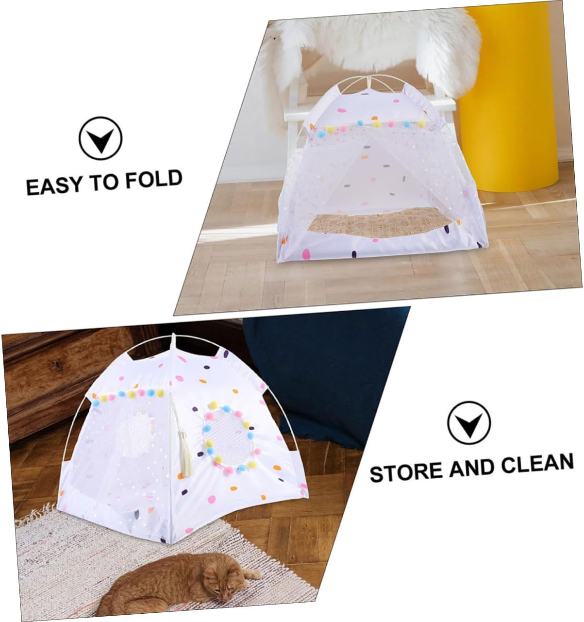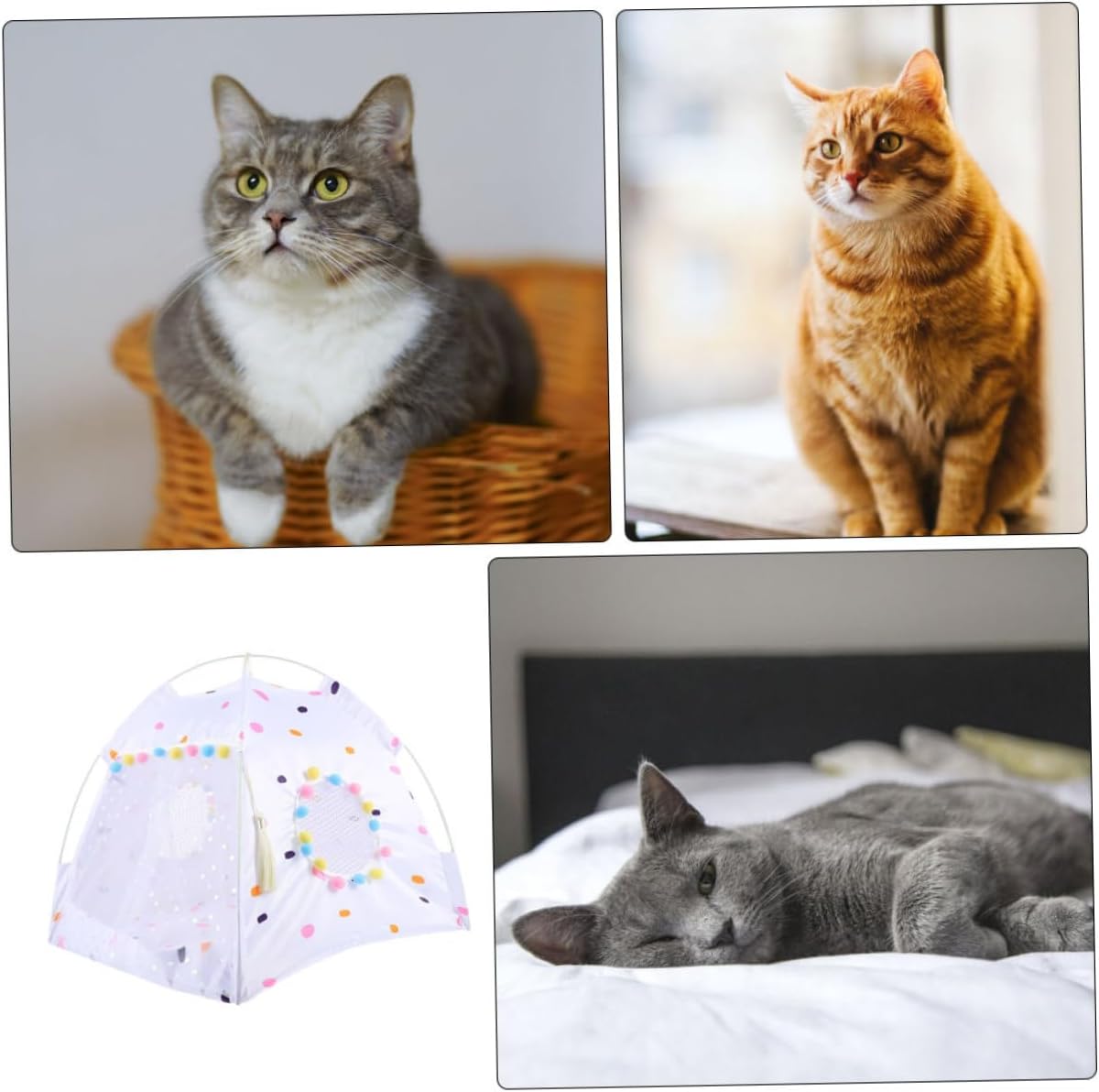 Package Include 1 x pet tent Features - Color: White Pet Sleeping Tent - Material: Polyester Cat Tent House - Size: About 60.00X60.00X62.00cm/23.58X23.58X24.37inch Breathable Pet Tent - Made of material, it is a comfortable, all-season for your pet Dog Folding Tent. - Small tent space can bring security to pets Dog Summer Tent. - It can also be set up in your patio, lawn, garden or any your house Dog Summer Tents. - for small dogs, as well as cats and kittens Dog Nest House. - block external intrusion and sense of light while the pet is sleeping, so that it can sleep peacefully Cat Summer Tent.Goods InformationDog Supplies It can supply outdoor time with shade and protect pets from summer like for dogs and cats when sleeping in balcony, patio, porch, yard.Pet Shelter Pet tent is designed for small dogs and cats to rest and sleep, made of polyester material for durable to use