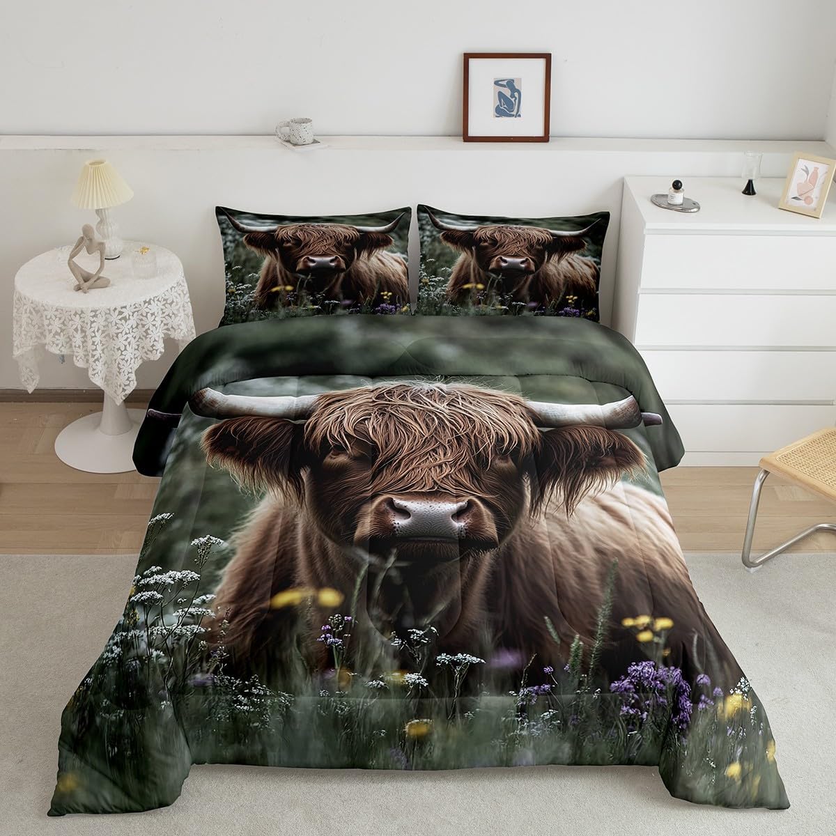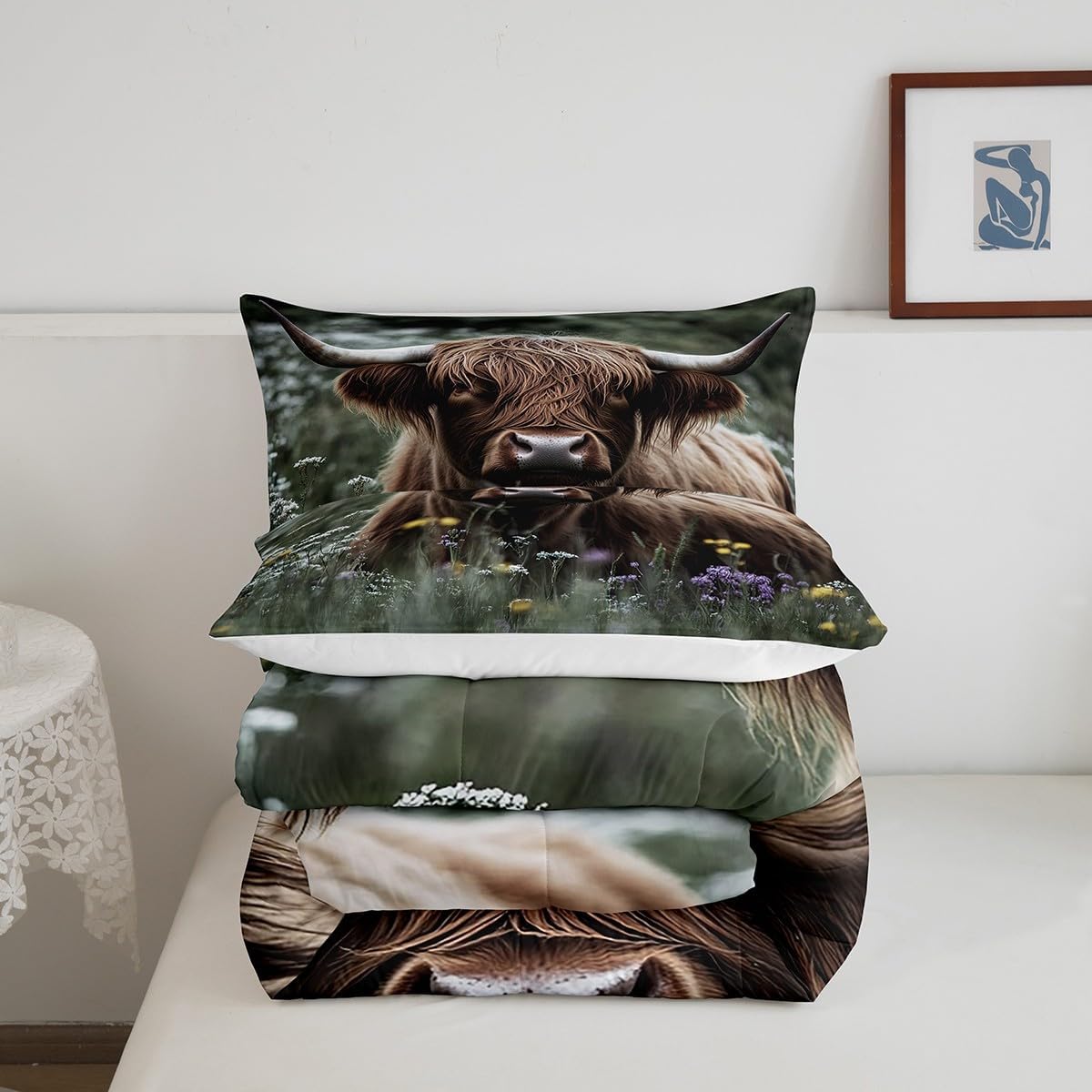 Size Information Twin size: 1 Down Comforter 68"W x 90"L, 1 Quilted Pillowcase 30"W x 20"L. Full size: 1 Down Comforter 79"W x 90"L, 2 Quilted Pillowcases 30"W x 20"L. Queen size: 1 Down Comforter 90"W x 90"L, 2 Quilted Pillowcases 30"W x 20"L. King size: 1 Down Comforter 104"W x 90"L, 2 Quilted Pillowcases 36"W x 20"L. Versatility We have many kinds of styles for you to choose. You can easily find a product that suits the style of your room. The item is not only Suitable for your home, bedroom, guest room, living room, or rv, your families, friends, relatives, boyfriend,girlfriend. Modern Design The luxury aesthetic comforter set is made reactive printing and dyeing process. The pattern is clear, the color is bright, which will not fade after repeated washing. Personalized As a manufacturer of digital printed home textiles, we follow current trends and bring you the latest and stylish home textile products. The item will make the room decorated in exquisite taste. We sincerely hope you will love the bed set.
