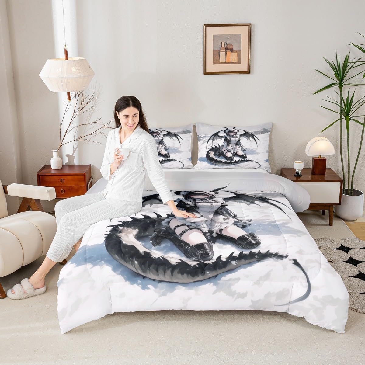 Welcome to our store. Each piece displays prints that maintain their vibrancy, bringing your favorite aesthetic right into your sleeping space.We have specialized in home textile for many years. We are committed to providing customers with comfortable products. Size Information Toddler size: 1 Down Comforter (42"W x 58"L) and 1 Quilted Pillowcase (30"W x 20"L). Twin size: 1 Down Comforter (68"W x 90"L) and 1 Quilted Pillowcase (30"W x 20"L). Full size: 1 Down Comforter (79"W x 90"L) and 2 Quilted Pillowcases (30"W x 20"L). Queen size: 1 Down Comforter (90"W x 90"L) and 2 Quilted Pillowcases (30"W x 20"L). King size: 1 Down Comforter (104"W x 90"L) and 2 Quilted Pillowcases (36"W x 20"L). Versatility The anime twin size comforter set makes an ideal gift for teens and young adults who appreciate Japanese animation art style.We have many kinds of styles for you to choose. You can easily find a product that suits the style of your room. The item is not only fits your home (bedroom, guest room, living room, etc) or RV, but also a present for holidays or anniversaries (Christmas, New Year, Halloween, Thanksgiving day, birthday, etc) for people who you love (your families, friends, relatives, boyfriend,girlfriend). Modern Design Anime decor for bedroom.The anime girl comforter set is made by reactive printing and dyeing process. The pattern is clear, the color is lasting and bright, which will not fade after repeated washing. No harmful chemicals or dye substance. Personalized Anime room decor for girls. As a manufacturer of digital printed home textiles, we follow current trends and bring you the latest and stylish home textile products. The item will make the room decorated in exquisite taste. We sincerely hope you'll love the bed set.