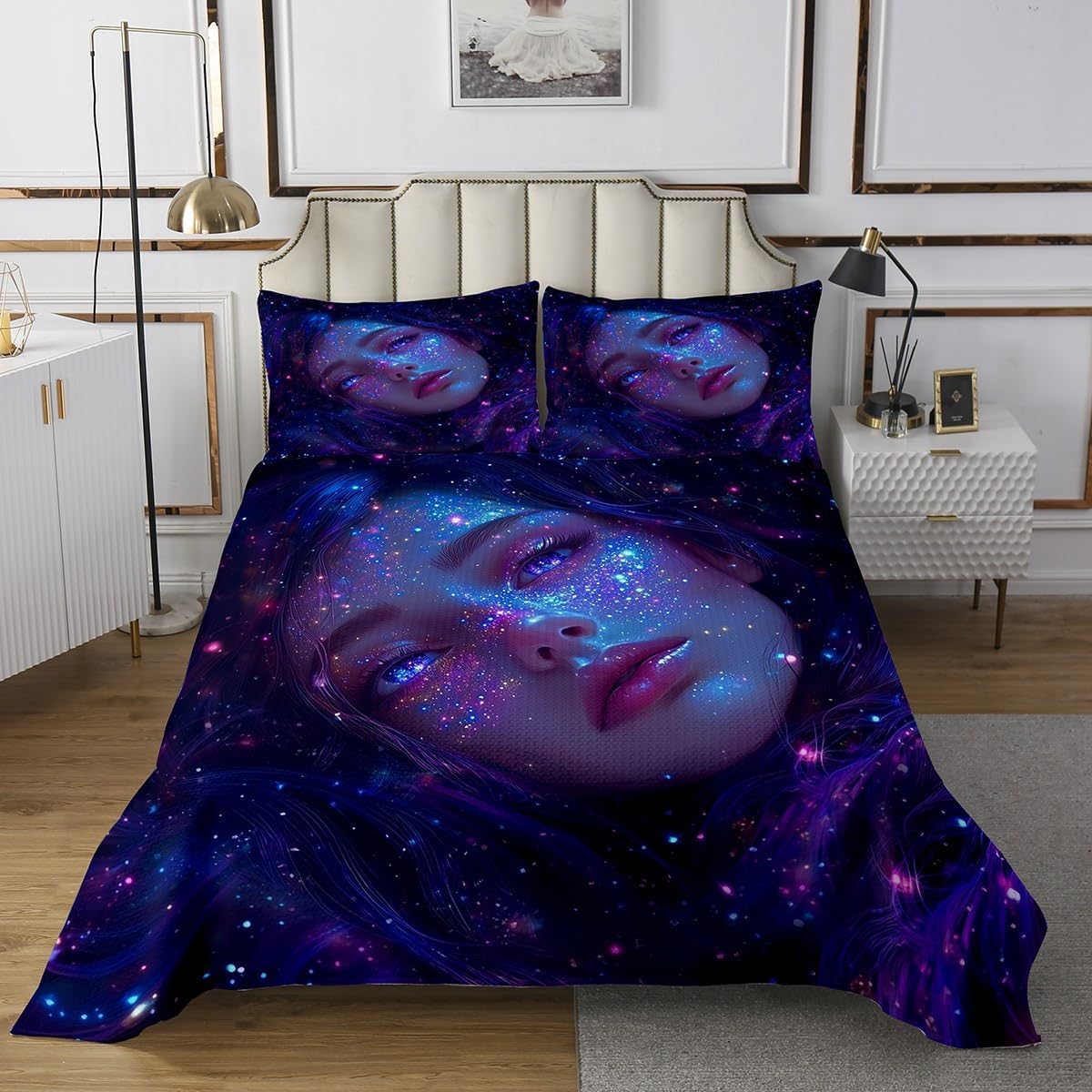Blessings: Makeover your bedrooms every season with our bedspread sets. Item for your room,girls boys youth room, master bedroom. For your mom, dad, sister, brother, grandma, wife, husband, daughter, son and all other beloved Size Information: 1 Twin size quilted bedspread 68"W X 90" L and 1 quilted pillow sham 30"W X 20"L. 1 Queen size quilted bedspread 90" W X 90"L and 2 quilted pillow shams 30"W X 20"L. 1 King size quilted bedspread 104"W X 90"L and 2 quilted pillow shams 36"W X 20"L. Useful and practical: A luxurious product for homes, dorm rooms, hotels, guest rooms. Practical to use for being polyester, feels like cotton which is soft and breathable Unique design: Vivid Colors won't fade thanks to new 3D digital printing methods. These unique designs match well with various color palettes of your rugs, curtains, headboard, furniture, and all other decor accessories. Personalized: As manufacturers of digital printed home textiles, we follow current trends and bring you the latest home fashion. To your family or friend, relative or boyfriend girlfriend, or to yourself, the item should be interesting and authentic. Note: The Bedspread and Pillow Shams are printed on the Front Side Only, the back of them are white colored. Comforter is Not Included in the set.