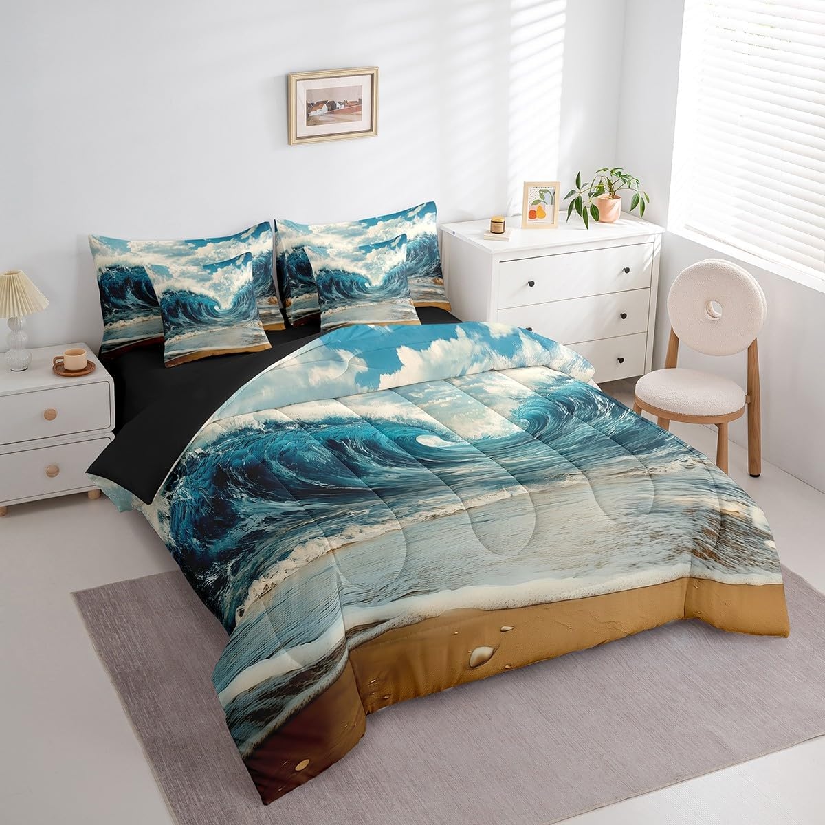 Welcome to Home Store We have specialized in home textile for many years,We sincerely hope that our products can give your room a brand new look Size Information Twin size : 1 Comforter 68"x90", 1x Fitted Sheet 39"x75"x16",1x Flat Sheet 96"x66", 2x Pillowcase 20"x30" and 2 Pillow Cover 18"x18" Full size : 1 Comforter: 79"x90", 1x Fitted Sheet 54"x75"x16",1x Flat Sheet 96"x66", 2x Pillowcase 20"x30" and 2 Pillow Cover 18"x18" Queen size : 1 Comforter: 90"x90", 1x Fitted Sheet 60''x80''x16",1x Flat Sheet 102''x90", 2x Pillowcase 20''x30'' and 2 Pillow Cover 18"x18" King size : 1 Comforter: 104"x90", 1x Fitted Sheet 78''x80''x16",1x Flat Sheet 106''x90", 2x Pillowcase 20''x35'' and 2 Pillow Cover 18"x18" Feature : We have products with different element patterns,which can easily decorate the theme room you want Our bedding is Soft and lightweight,but it can keep you warm for all season Our Comforter Pattern Printing are very definition Occasion and Presents our bedding set is not only great for your Bedroom or Guest Room,but also good for your Rv Bunks,it's also a great Present for your kids,families,friends,boyfriend,girlfriend,husband and wife Personalized As a manufacturer of digital printed home textiles, we follow current trends,Some of our products : Duvet cover,Comforter Set, Sheet Set,Blanket,Window Curtains,Shower Curtains,can be customized with names or Something you want to say to someone Our Wish We sincerely hope you'll love our bed set