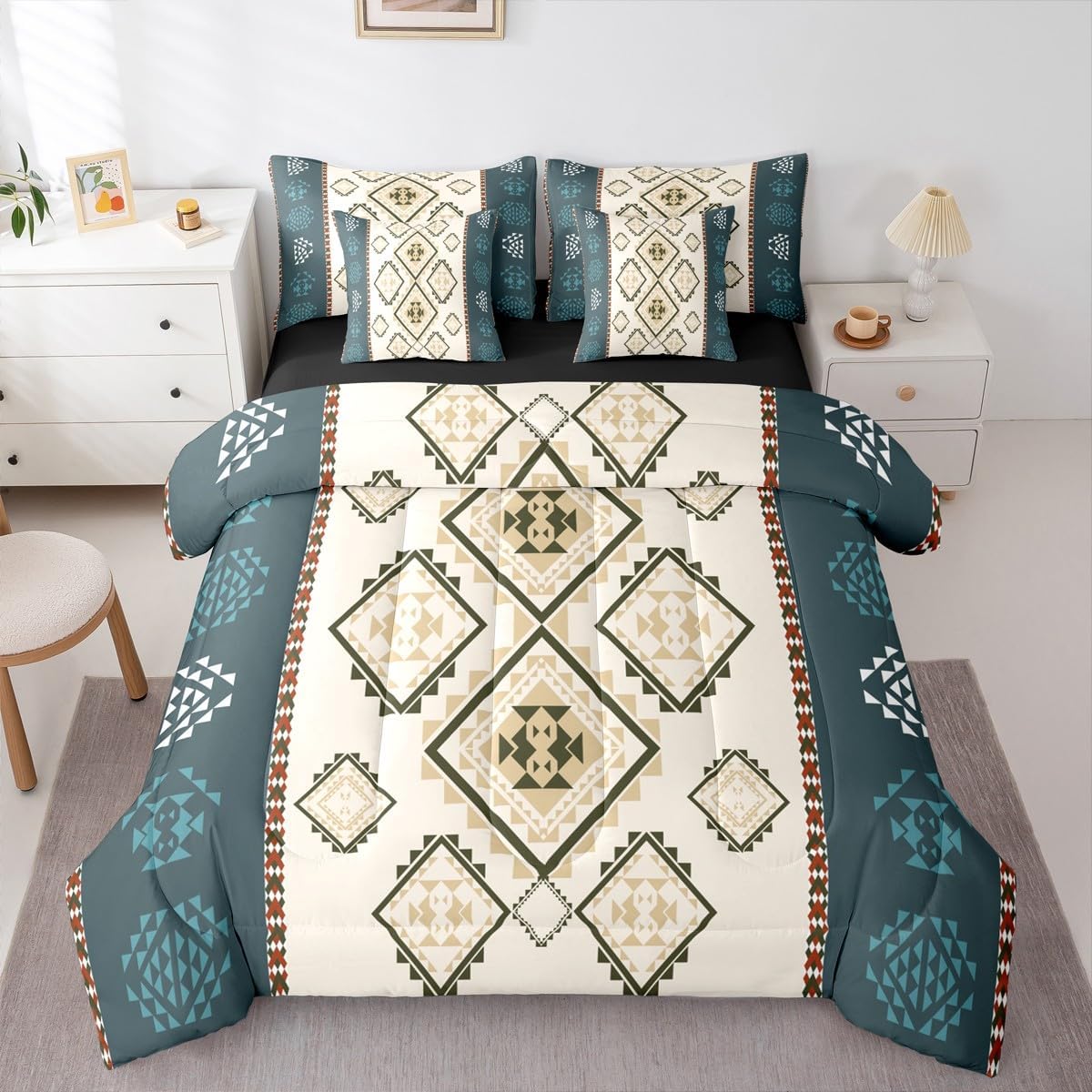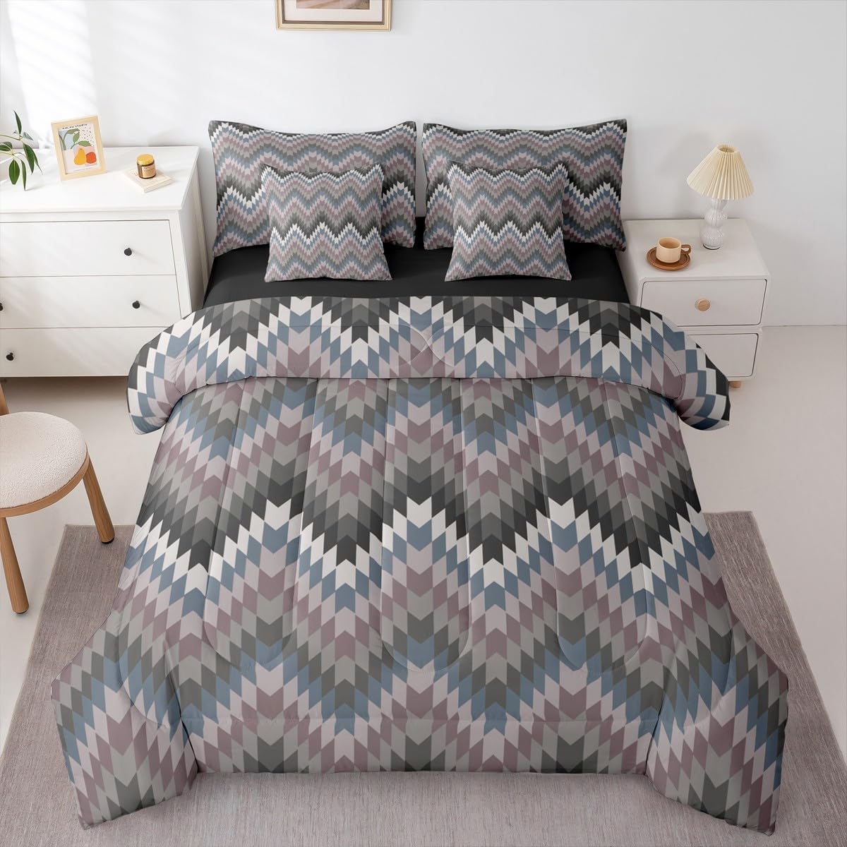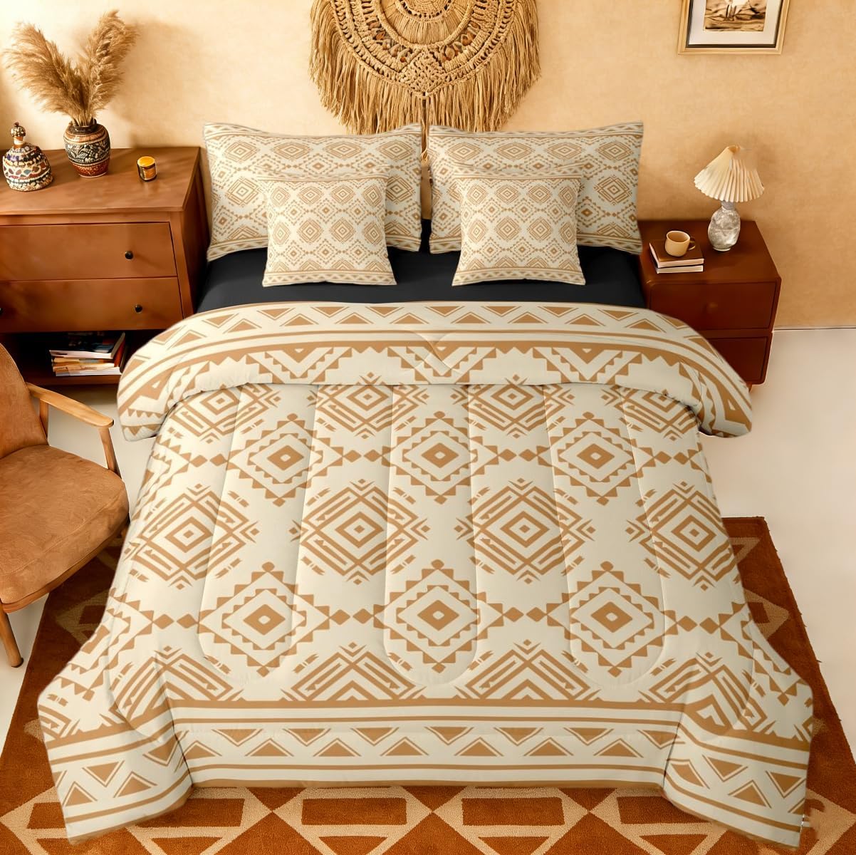 Size Information Twin : 1 Comforter: 68"x90",1x Fitted Sheet 39"x75"x16",1x Flat Sheet 96"x66",2x Pillowcases 20"x30" and 2 Pillow Cover 18"x18" Full : 1 Comforter: 79"x90",1x Fitted Sheet 54"x75"x16",1x Flat Sheet 96"x66",2x Pillowcases 20"x30" and 2 Pillow Cover 18x18" Queen : 1 Comforter: 90"x90",1x Fitted Sheet 60"x80"x16",1x Flat Sheet 102"x90",2x Pillowcases 20"x30" and 2 Pillow Cover 18"x18" King : 1 Comforter: 104"x90",1x Fitted Sheet 78"x80"x16",1x Flat Sheet 106"x90",2x Pillowcases 20"x36" and 2 Pillow Cover 18"x18" Style Variety: Available in multiple styles. Suitable Spaces: For use in bedrooms, guest rooms, living rooms, or RVs. Printing Process: Manufactured using reactive printing and dyeing technology. Design Feature: Diverse pattern options. Care Instructions: Machine washable. Air dry. Low-heat ironing recommended. Not suitable for bleach, dry cleaning, or machine drying. Intended Decor: Designed for home textile applications.