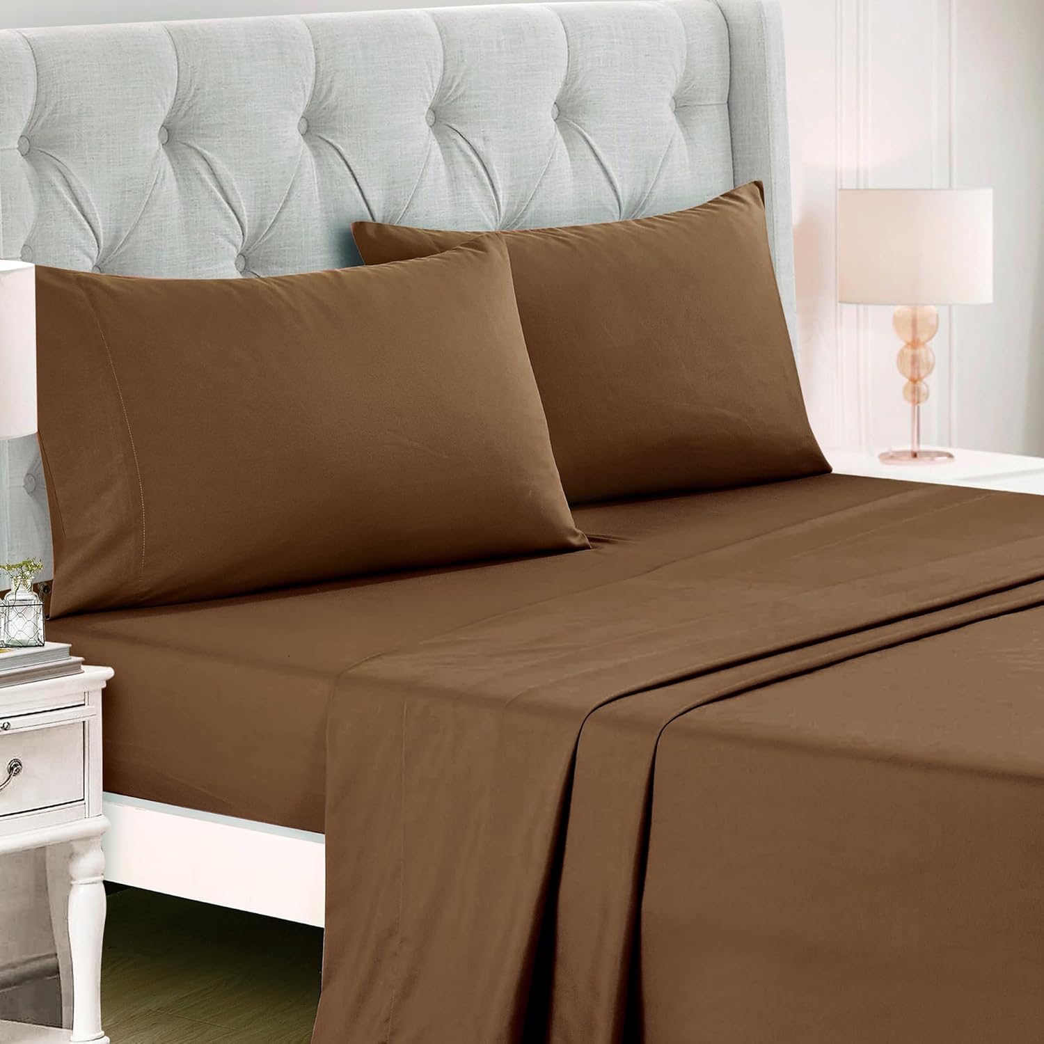 This comforter set features a rich brown color, ultra-soft microfiber fabric, and subtle geometric stitching—blending modern simplicity with cozy all-season warmth.