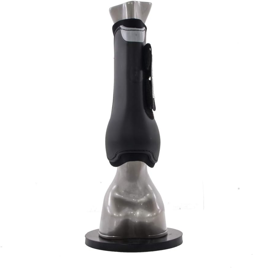 Exceptionally popular Eskadron FlexiSoft Open-Front Boots feature a hard, yet lightweight, TPE thermal molded plastic outer shell for protection. An easy-care neoprene lining helps prevent slipping and can be hosed clean. A soft, flexible area at the top of the boot back allows added horse comfort and freedom of movement, especially when jumping. Double hook-and-loop fasteners keep boots secure. Pair.