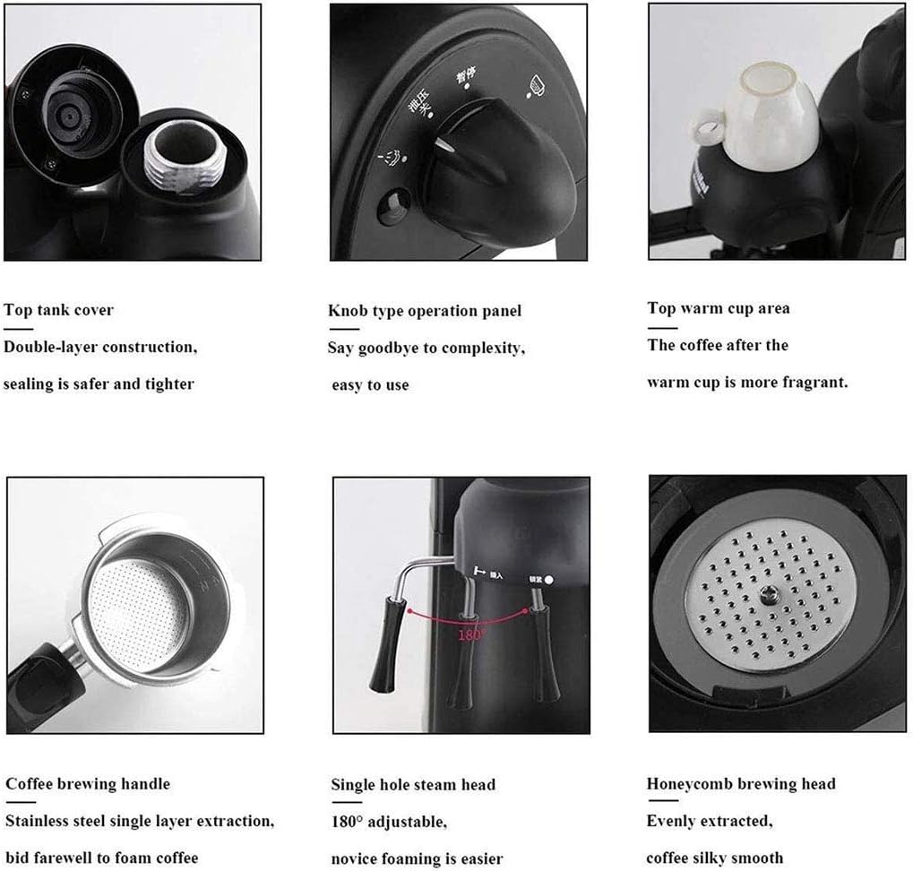 Inspired by the espresso in your home-enjoy coffee time. Espresso machine Rated voltage: 220V-240V~50/60Hz Maximum power: 800W Water tank capacity: 240ml (4 cups) Pressure Gravity: 5Bar Weight: 2KG Size: H30 X W16.5 X L23.5cm Material: aluminum alloy + PP plastic Get better from it: No matter where you are, it allows you to experience the pleasure of high-quality coffee. During leisure: Relieve stress and release the mind full of positive energy. when working: A cup of coffee not only relieves fatigue but also increases productivity