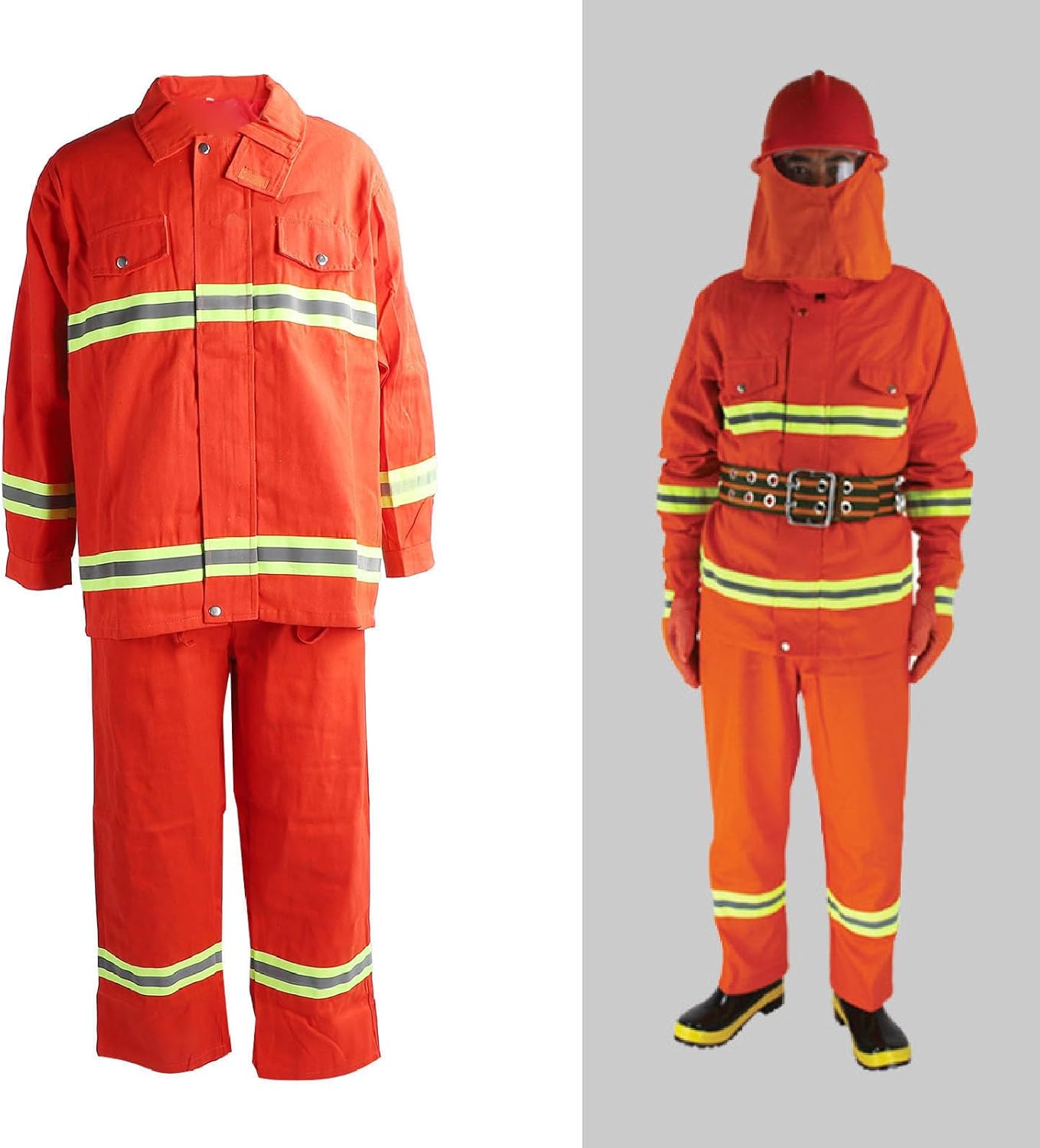 Specification: Item Type: Flame Resistant Safety Suit Model: Type 97 Material: Flame retardant cotton Flame Retardant Performance: Damage Length: Secondary Burning Time: Flame Retardant Time: Operating Environment: -20℃ ~ + 200℃ Water Resistant: Grade 3 Inner Appearance Temperature Rise: Less than 15℃ packing list: 1 x Upper Clothing 1 x Pants Note: 1. There may be size variations. 2. This product only includes clothing and pants, belts, gloves, helmets and shoes need to be purchased separately.